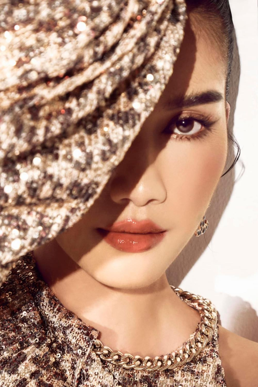 Sau bộ ảnh mặc chiếc váy dạ hội trắng ôm sát, Á hậu Phương Anh mới đây lại tiếp tục tung bộ ảnh mặc bộ váy lấp lánh với họa tiết da báo của NTK Lê Thanh Hòa.