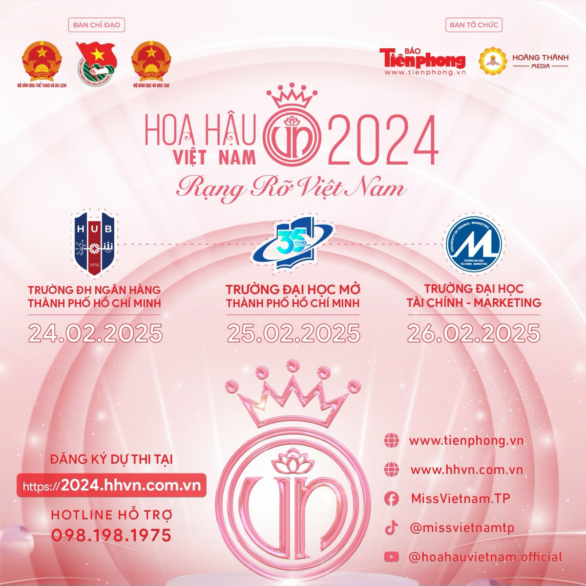 Cuộc thi Hoa hậu Việt Nam 2024 đang bước vào chặng nước rút ở những ngày cuối cùng của giai đoạn nhận hồ sơ đăng ký. Để tiếp thêm động lực và mang đến thông tin hữu ích cho các nữ sinh, chuỗi sự kiện Ngày hội tuyển sinh Hoa hậu Việt Nam 2024 sẽ được Ban Tổ chức cuộc thi tiếp tục thực hiện tại 3 trường Đại học ở khu vực TP.HCM.