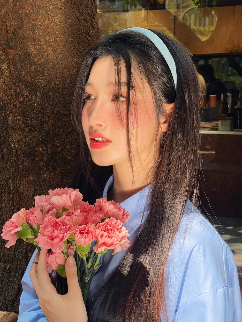 Nàng hậu diện trang phục, để tóc gần như giống hệt Lưu Diệc Phi trong bức hình nổi tiếng trên, không quên ôm một bó hoa. Ngay lập tức, khán giả đều xuýt xoa khen ngợi nhan sắc dịu dàng, càng ngắm càng mê của Phương Nhi.