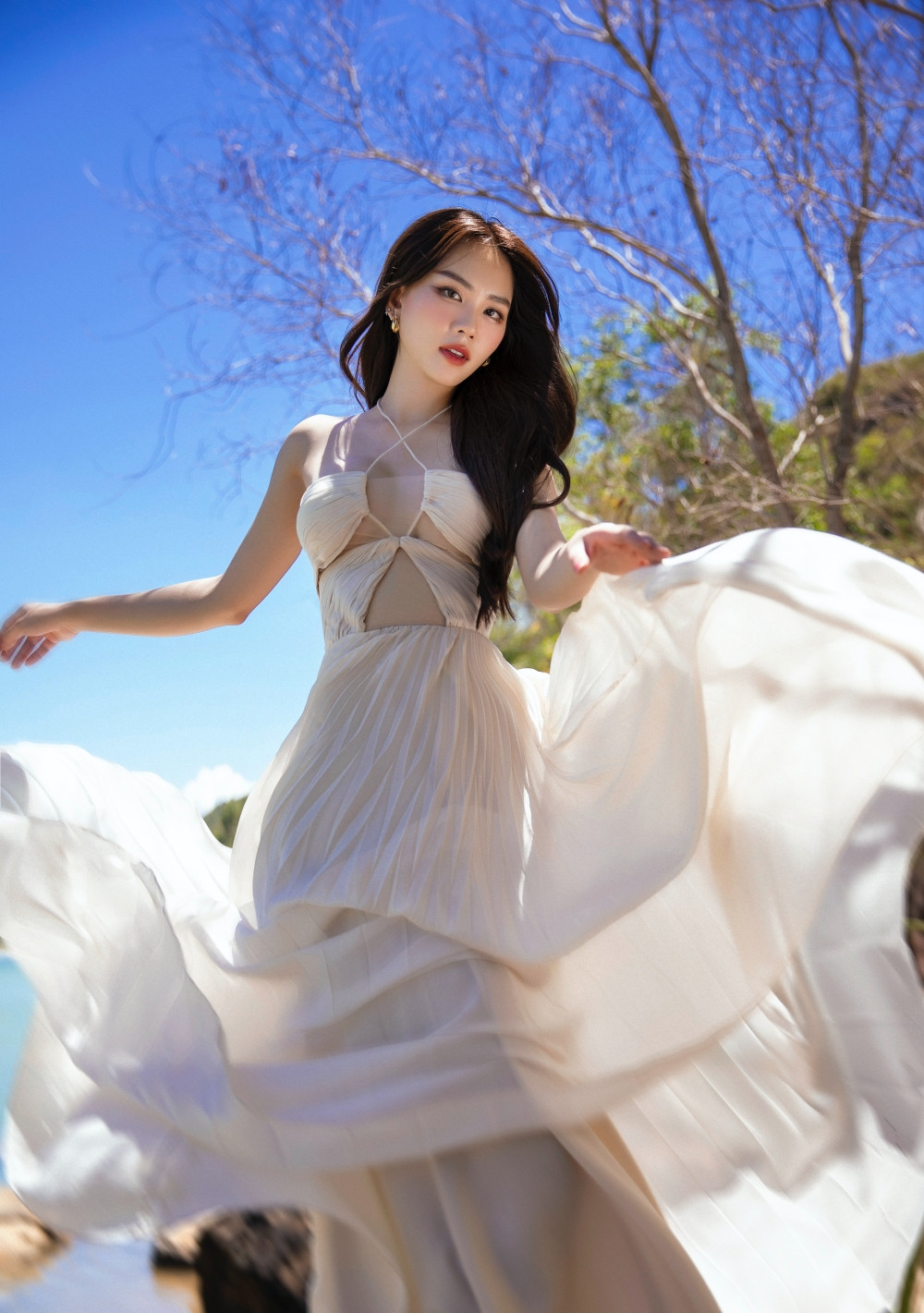 Trong bộ ảnh lần này, Á hậu Phương Nhi một lần nữa được khen như “công chúa” khi tạo dáng trước biển. Người đẹp ngày càng chuyên nghiệp hơn trong cách tạo dáng trước ống kính, cũng như trình diễn trên sân khấu.