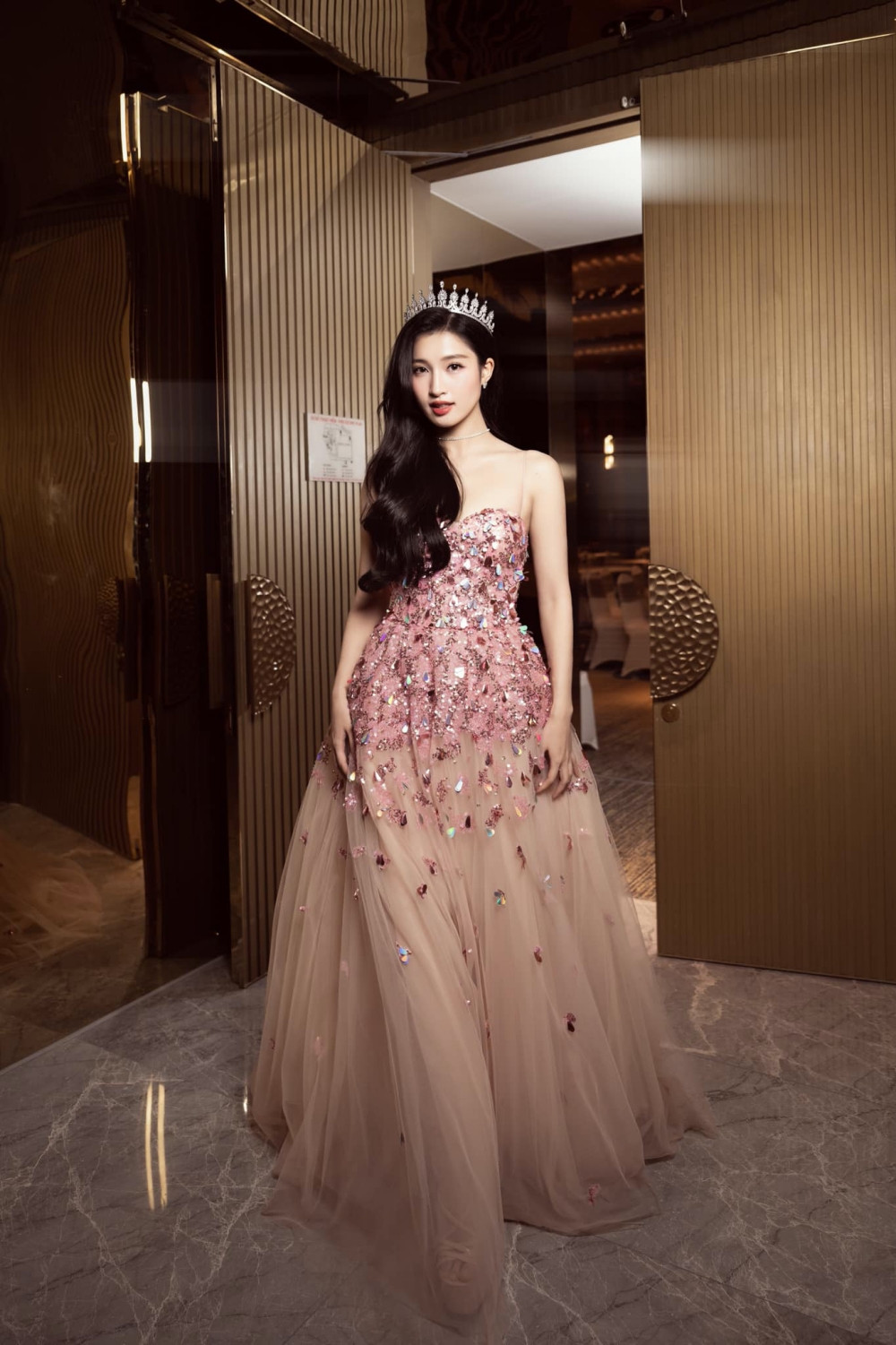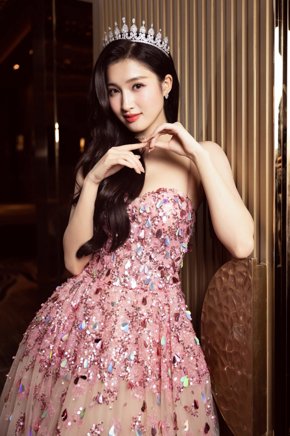 Mới đây khi tung bộ ảnh mặc thiết kế dạ hội màu hồng lấp lánh, đội vương miện xinh xắn, Á hậu Phương Nhi lại được fan khen đẹp như “công chúa Disney”. Màu hồng cũng là gam màu chủ đạo của cuộc thi Miss International.