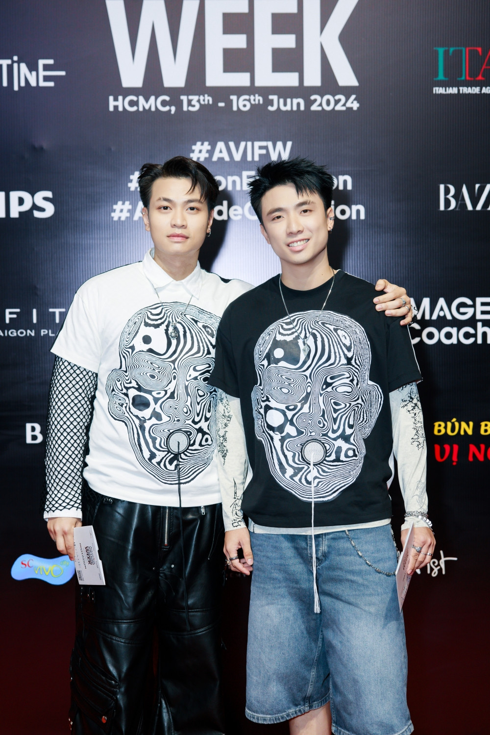 Diện chiếc áo thun đến từ BST của NTK Võ Công Khanh, cặp đôi Ninh Dương Story xuất hiện ăn ý tại thảm đỏ chương trình.