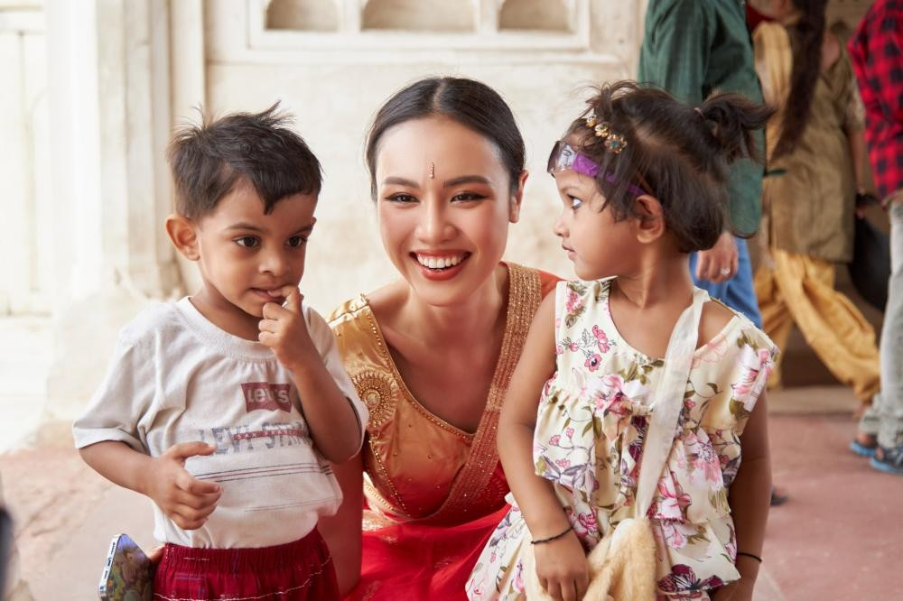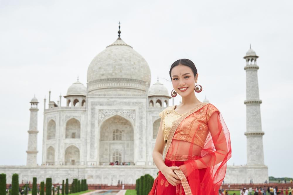 Tham quan 2 danh thắng nổi tiếng bậc nhất tại Ấn Độ là Taj Mahal và Red Fort, Á hậu Thủy Tiên chọn trang phục Langa Voni, đây là trang phục truyền thống của phụ nữ người Ấn Độ.
