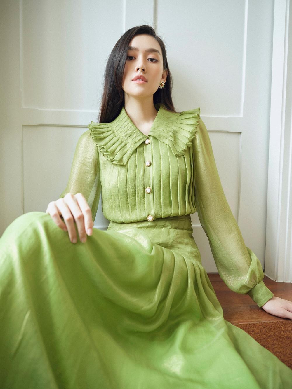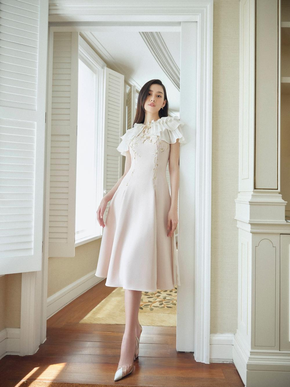 11 mẫu váy trong loạt ảnh tuy cùng concept trang nhã, nữ tính nhưng lại có sắc thái khác nhau. Trong khi các thiết kế hở vai, đầm hai dây làm nổi bật nét đẹp mềm mại của cơ thể thì những mẫu váy xếp ly, phối voan hay thêu thủ công mang lại cảm giác thanh nhã, quý phái của một quý cô.