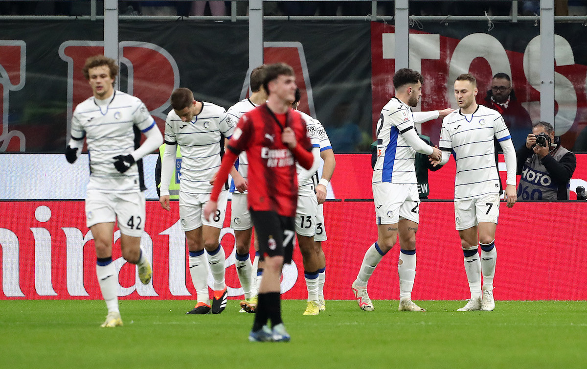 Atalanta đáp trả với cơ hội dành cho Emil Holm, cầu thủ người Thụy Điển vô-lê đưa bóng đi vọt xà sau quả tạt củaDe Ketelaere. Bất lợi đến với Atalanta ngay trong hiệp một khi HLV Gasperini nhận 2 thẻ vàng liên tiếp ở phút 38, qua đó bị đuổi khỏi sân. AC Milan mở tỷ số ở phút 45 nhờ công của Leao, Theo Hernandez có đường chuyền trả ngược rất thuận lợi để cầu thủ người Bồ Đào Nha dứt điểm làm tung lưới Atalanta. Tuy nhiên, đội chủ nhà không giữ được lợi thế quá lâu, đội bóng của Pioli nhận bàn thua chỉ 2 phút sau đó. Emil Holm chuyền bóng cho Koopmeiners dứt điểm chìm đánh bại Maignan.