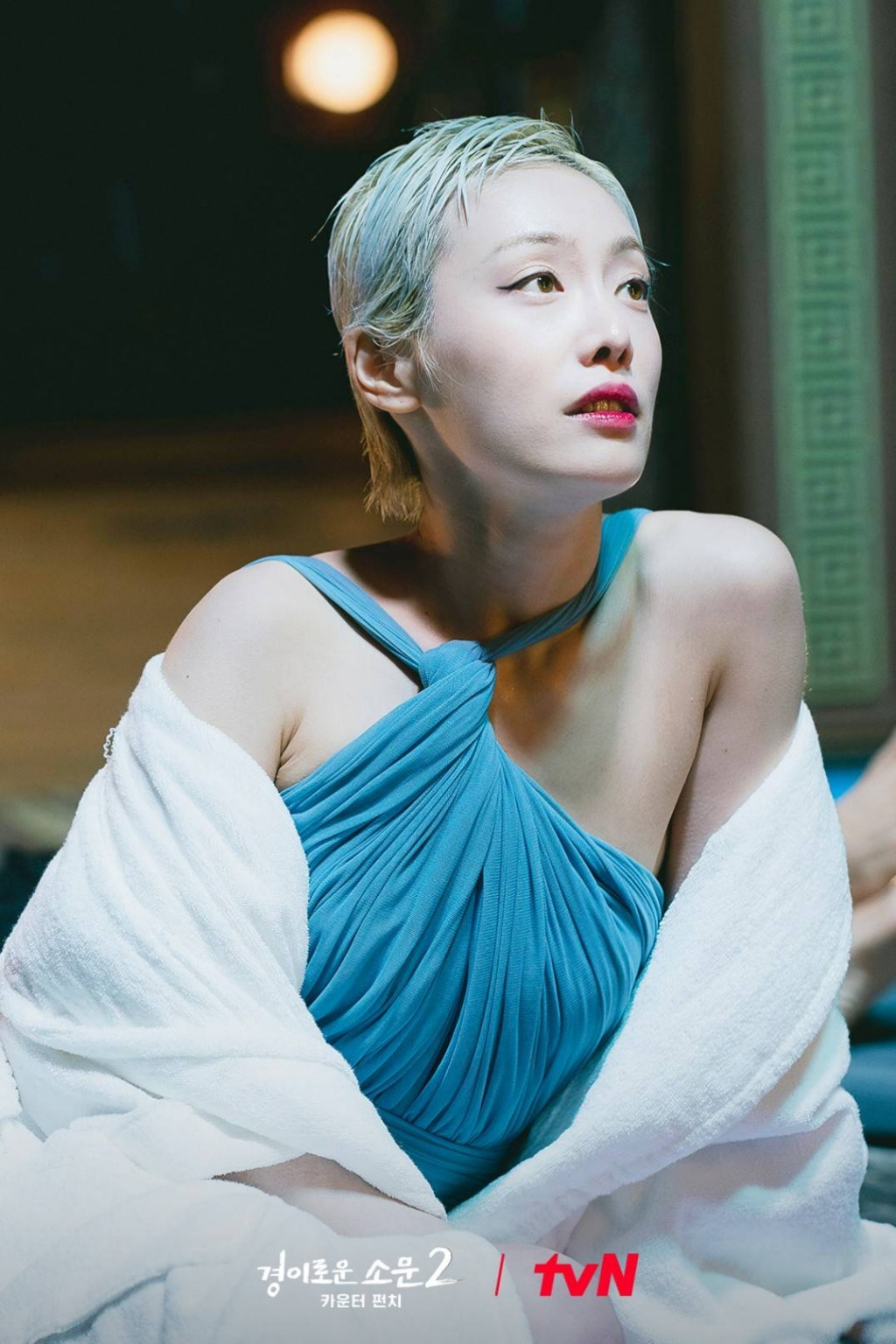 | Kim Hieora từng gây ấn tượng mạnh trong The Glory với nhân vật Lee Sa Ra mang tính cách bất cần, xấc xược, chuyên bắt nạt những bạn học yếu thế. |