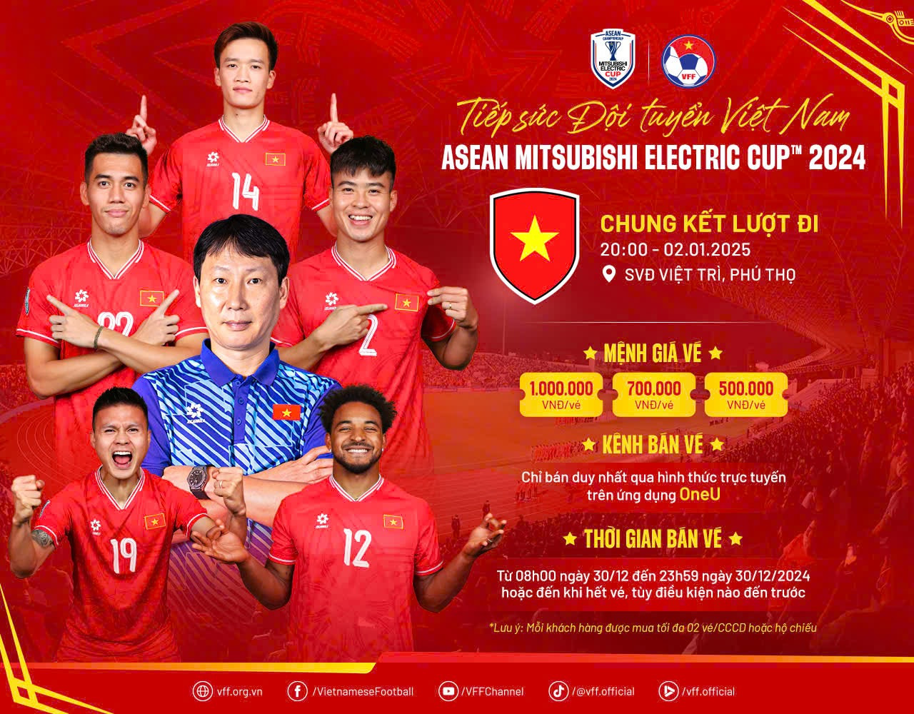 Để tránh tình trạng chen lấn, xô đẩy xảy ra, VFF chỉ bán trực tuyến trên ứng dụng OneU. Thời gian mở bán là từ 8h ngày 30/12 đến 23h59' ngày 30/12 hoặc đến khi hết vé. Mỗi người chỉ được mua tối đa 2 vé.