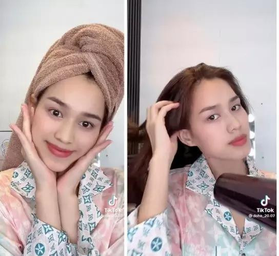Nàng hậu cũng chỉ sấy khô se se, sau đó dùng serum mọc tóc nhỏ lên da đầu để kích thích tóc con mọc nhiều hơn, thoa serum dưỡng tóc lên đuôi tóc để tóc bóng khỏe. Mỗi tuần, Đỗ Thị Hà thường áp dụng chu trình này khoảng 1 đến 2 lần và nhờ vậy, cô không còn lo lắng về chuyện rụng tóc khi đã lấy lại được mái tóc dày và chắc khỏe, suôn mượt.
