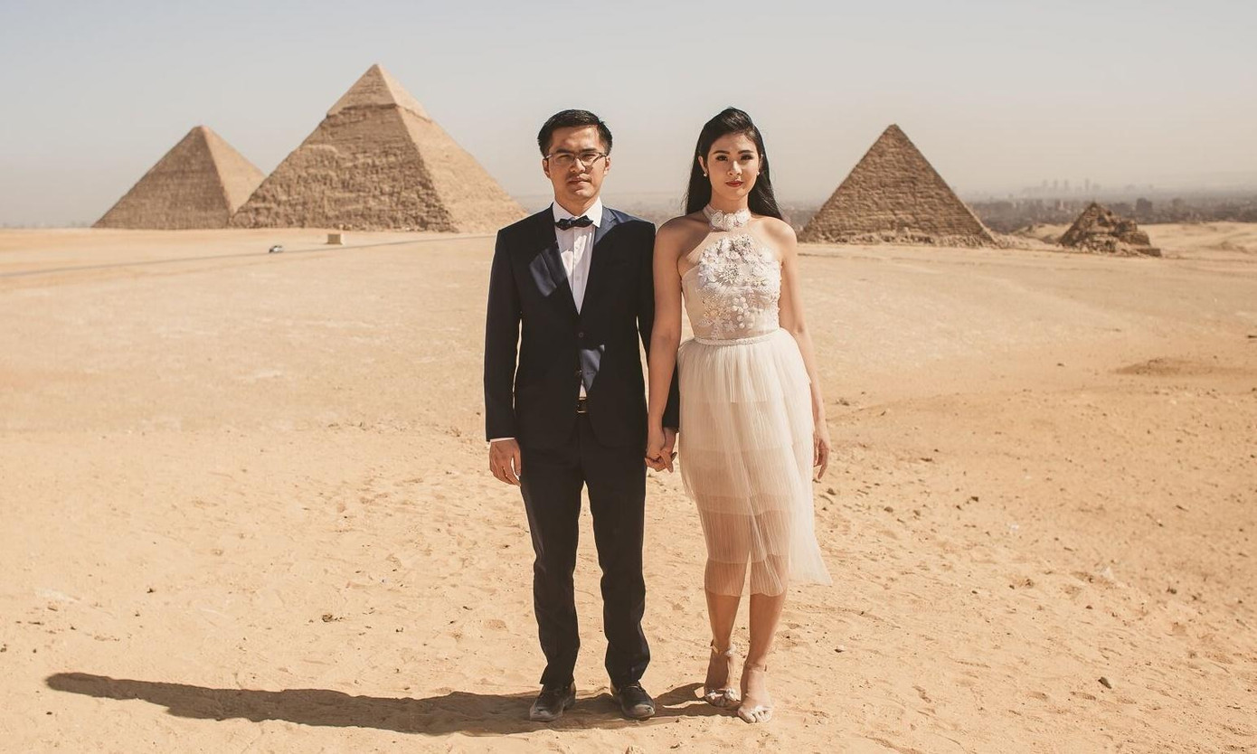 Hoa hậu cho biết, cô và ông xã Phú Đạt nảy ra ý định chụp ảnh cưới nhân dịp cả hai cùng có chuyến công tác tại Ai Cập. Đây là đất nước mà cặp đôi gặp nhau lần đầu tiên, có những ấn tượng tốt đẹp và rung động về nhau.