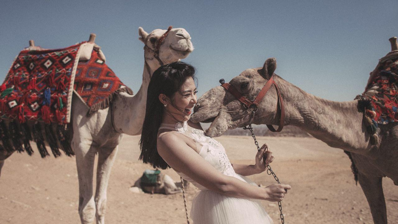 “Vì đi công tác chung với đoàn nên chúng tôi chỉ có khoảng 1 giờ đồng hồ để chụp ảnh trên sa mạc bên hai chú lạc đà và phía sau là di tích kim tự tháp nổi tiếng của Ai Cập”, Ngọc Hân kể.