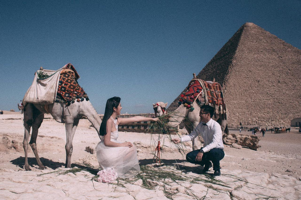 Khi quyết định chụp ảnh cưới ở Ai Cập, nàng hậu đã tự chuẩn bị trang phục, trang phục cũng như làm tóc chứ không có ê-kíp hỗ trợ. Ông xã Phú Đạt cũng mang theo bộ suit giản dị để lên hình được bảnh bao nhất. Trước ống kính của một nhiếp ảnh gia tại Ai Cập, cặp đôi không tạo dáng quá cầu kỳ mà chỉ ghi lại khoảnh khắc đời thường nhưng vẫn đầy lãng mạn, ngọt ngào.