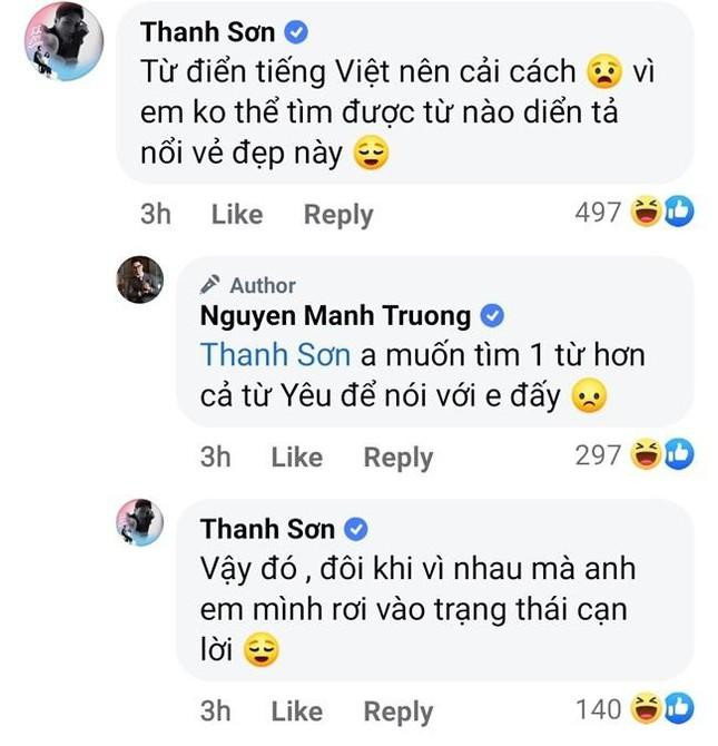 Một lần khác, Thanh Sơn lại tấm tắc công nhận vẻ đẹp của Mạnh Trường đúng là hoàn hảo. Còn Mạnh Trường "thả thính" ngọt không kém, khẳng định “Thanh Sơn” đồng nghĩa với “Đáng Yêu”.