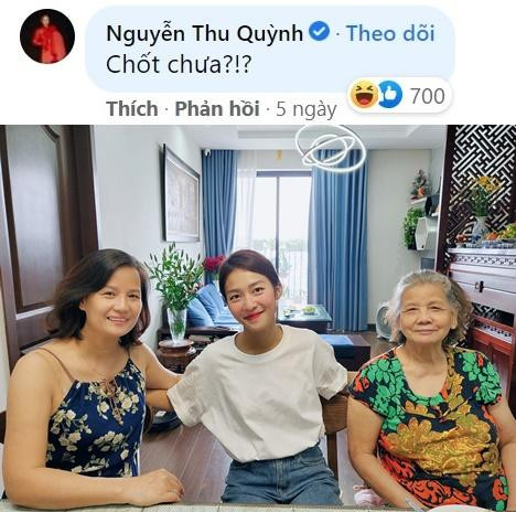 Khi Thanh Sơn cập nhật hình ảnh tập phim 11 Tháng 5 Ngày mới nhất thì Thu Quỳnh nhanh chóng bày tỏ tình cảm “Chị bị nghiện đôi Đăng - Nhi nhé!”. Trước đó, trong status Thanh Sơn khoe chuyện Khả Ngân đến thăm nhà mình thì Thu Quỳnh cũng thả bình luận cực chất “Chốt chưa?” cho thấy cô cũng hào hứng khi Thanh Sơn - Khả Ngân thành đôi.
