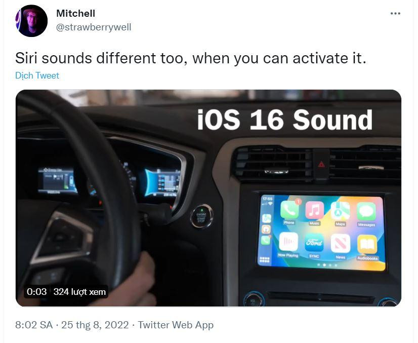 Ngoài ra, âm kích hoạt Siri cũng đã thay đổi. Hai tiếng bíp kích hoạt Siri đã bị biến mất trong một thời gian khi người dùng nói “hey Siri” hoặc nhấn giữ nút nguồn trên điện thoại của bạn. Ngoài ra, khi kích hoạt trợ lý giọng nói trong khi sử dụng CarPlay. Bây giờ, giọng điệu đó đã được thay thế bằng một giọng điệu nhẹ nhàng hơn và ít gây chú ý hơn.