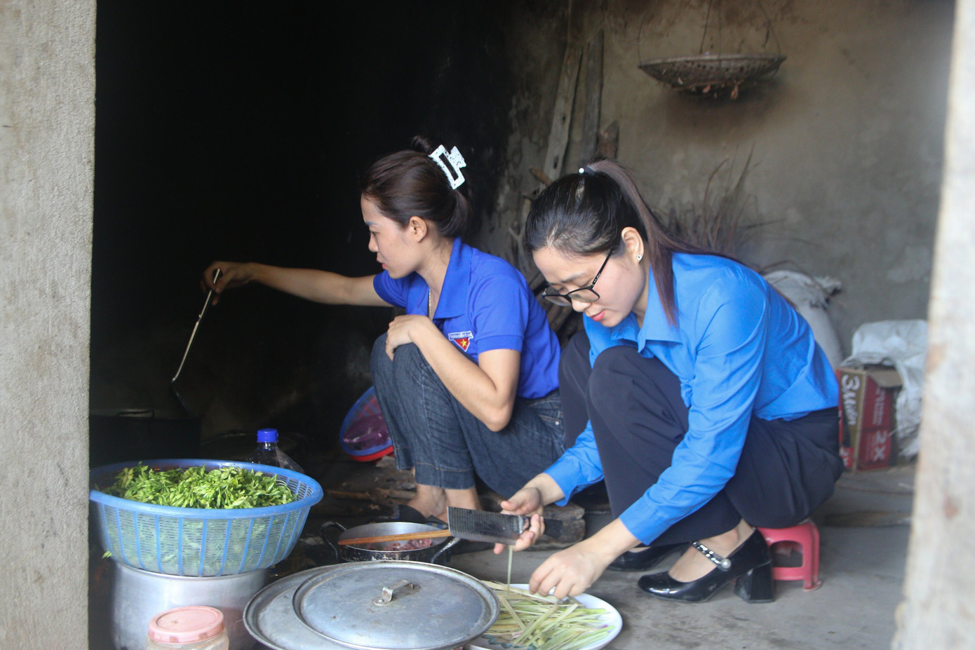 | Đoàn viên thanh niên chuẩn bị bữa cơm tại gia đình các Mẹ Việt Nam anh hùng, thắp hương tri ân các Anh hùng liệt sĩ. |
