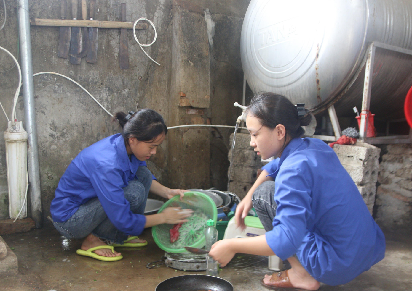 | Đoàn viên thanh niên dọn vườn cho gia đình Mẹ Việt Nam anh hùng Mai Thị Lâm (98 tuổi) ở xã Hà Long, huyện Hà Trung. |