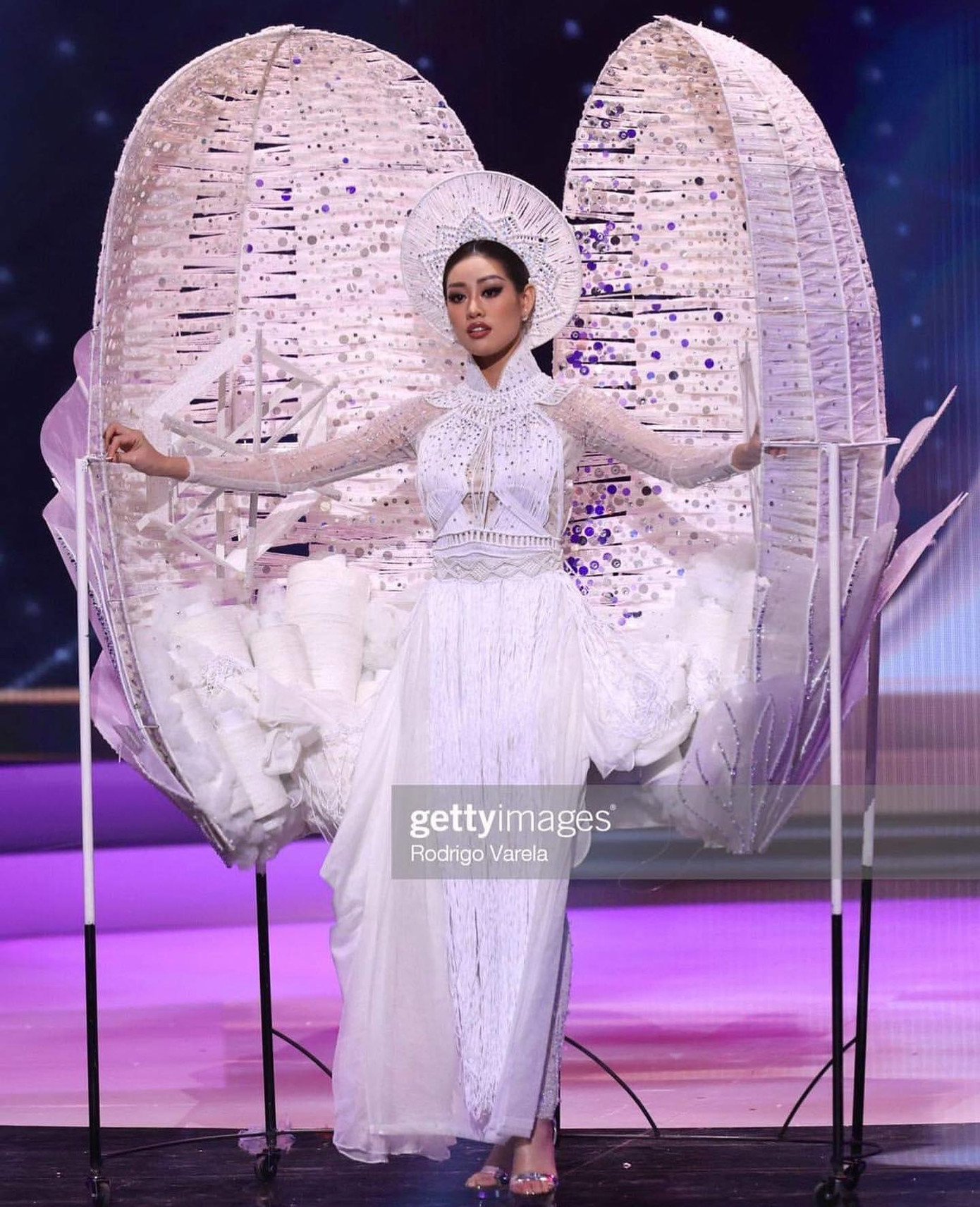 Tại phần thi Trang phục dân tộc - một trong những vòng thi được mong chờ nhất của Miss Universe, Khánh Vân đã lựa chọn Kén Em của nhà thiết kế Khoa Lỗ để tỏa sáng trên sân khấu quốc tế. Với phần khung đóng mở độc đáo nhưng khá nặng và cồng kềnh, Khánh Vân đã gặp chút sự cố nhỏ với lớp vỏ kén. Tuy nhiên, cô nàng đã nhanh chóng xử lý tình huống và mang đến một màn trình diễn mãn nhãn.