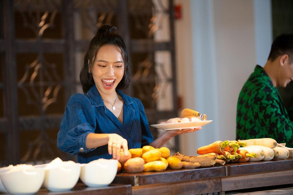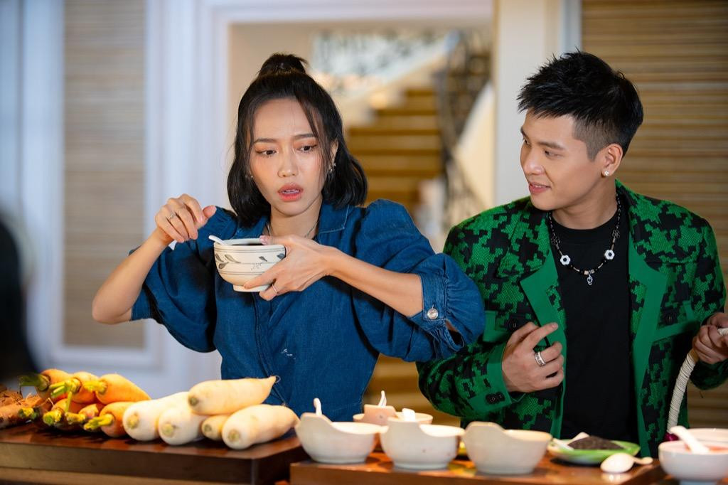 Gian bếp phía Trịnh Thăng Bình khá “ồn ào” khi giọng ca Tâm Sự Tuổi 30 không ngừng “làm nũng” khiến MC Đại Nghĩa và Diệu Nhi “phê phán” không ngớt lời. Ngược lại, Jang Mi làm đồng đội lẫn người ngoài cuộc phải “cạn lời” khi cô nàng cắt chanh “sáng tạo” theo chiều dọc thay vì chiều ngang.