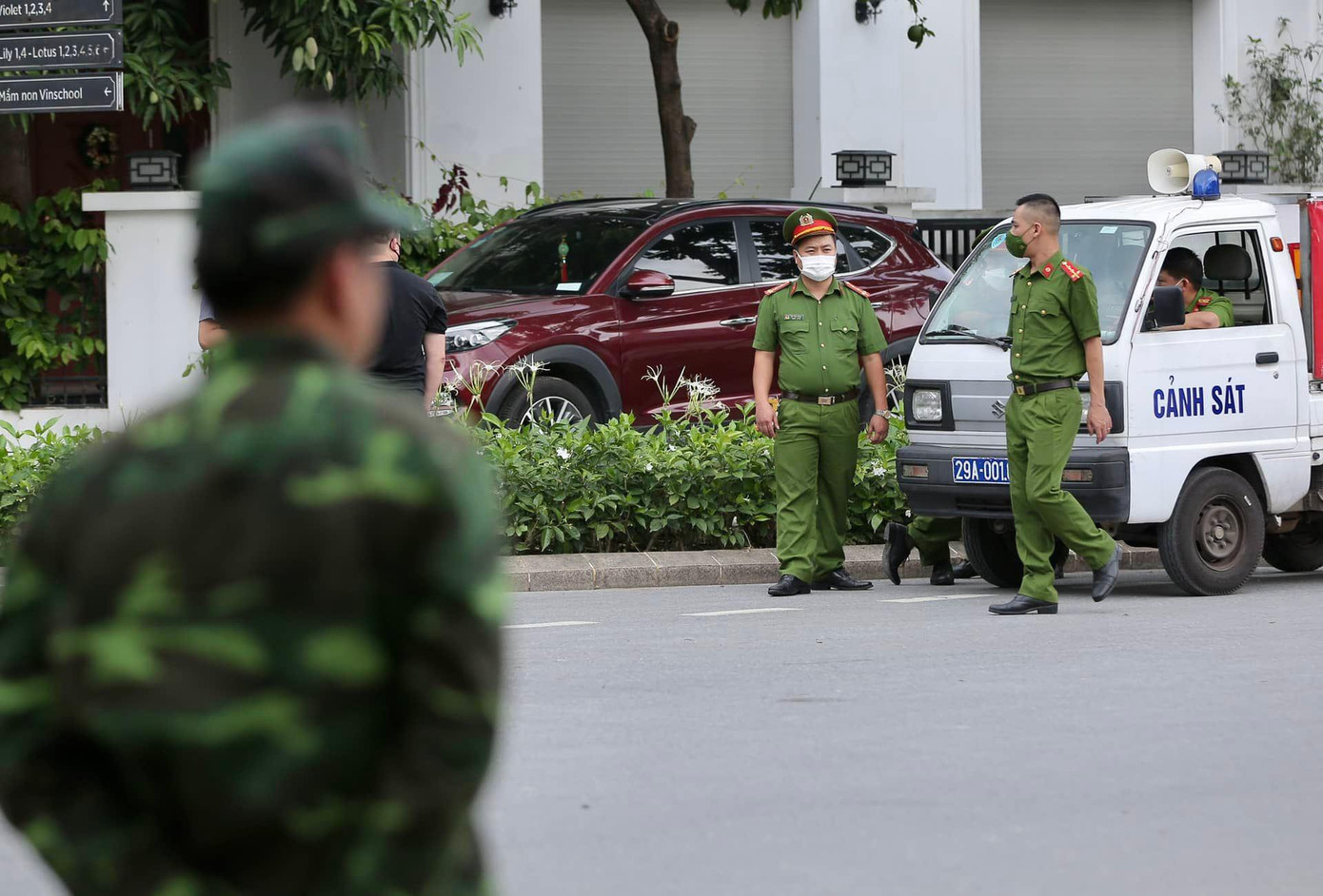 Nhiều cảnh sát, dân phòng và bảo vệ khu đô thị cũng tăng cường bên ngoài đảm bảo an ninh cho khu biệt thự.