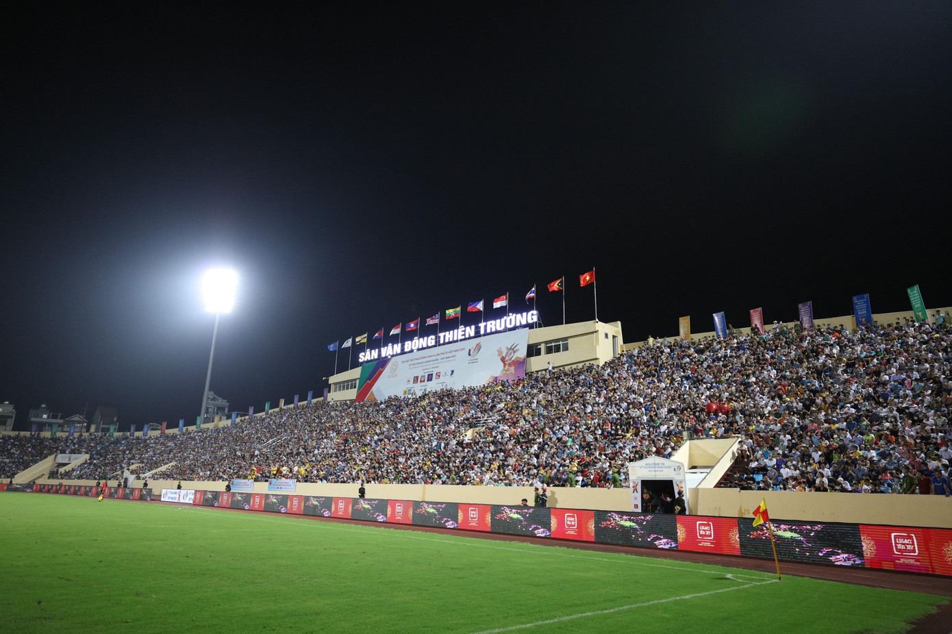 TPO - Dù chỉ là trận đấu của đội khách, người hâm mộ Nam Định vẫn phủ kín sân Thiên Trường cổ vũ cuồng nhiệt trong trận đấu giữa U23 Lào và U23 Singapore ở bảng B môn bóng đá nam SEA Games 31. Một hình ảnh rất đẹp của CĐV và nước chủ nhà SEA Games 31.