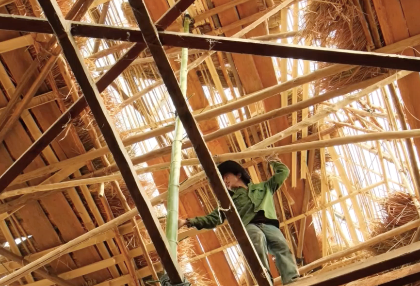 Tre già, nứa rừng cộng với kỹ thuật buộc bằng dây mây thay vì đinh ốc, vít để giữ cho công trình bền chắc, vững chãi qua mưa nắng.