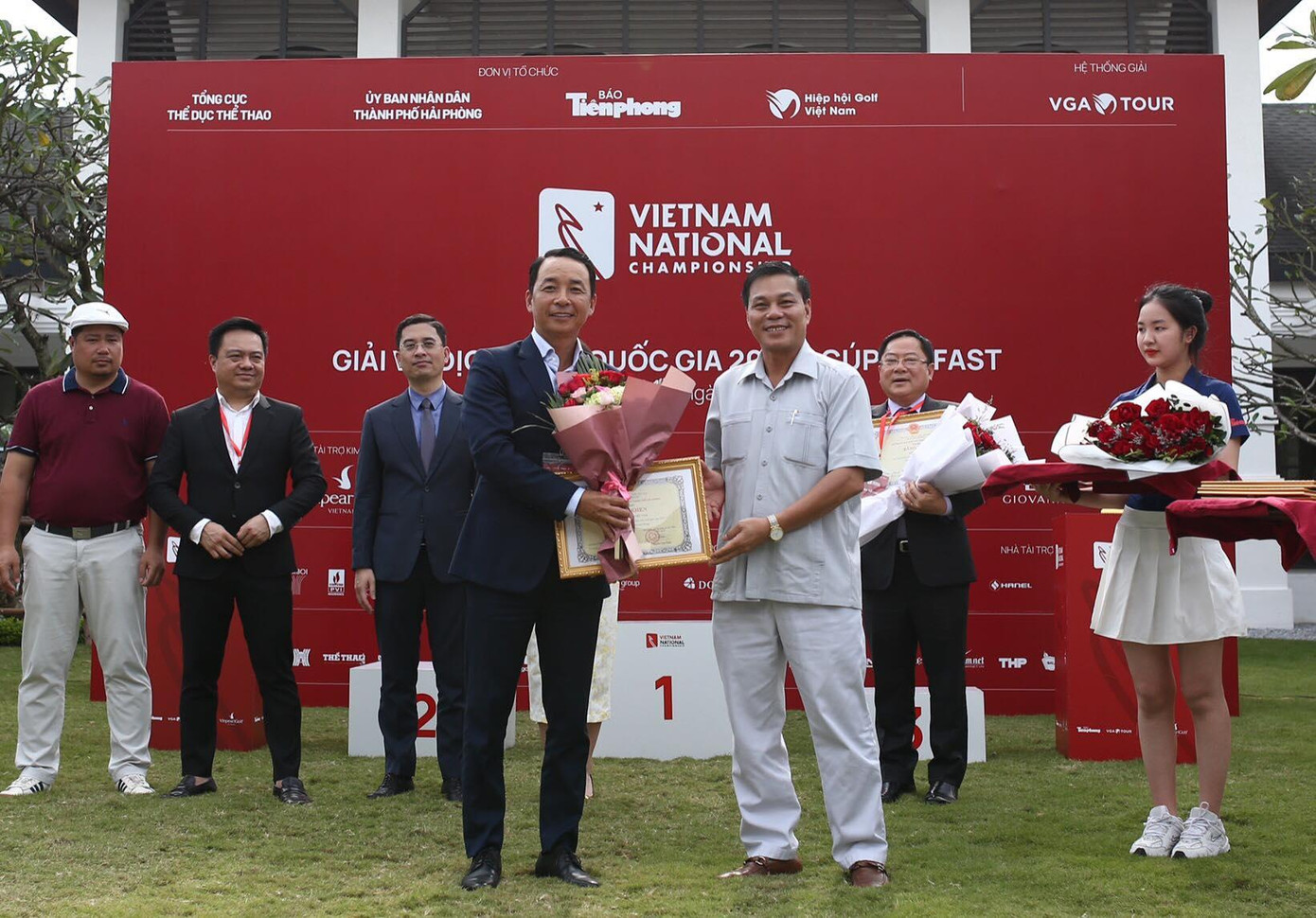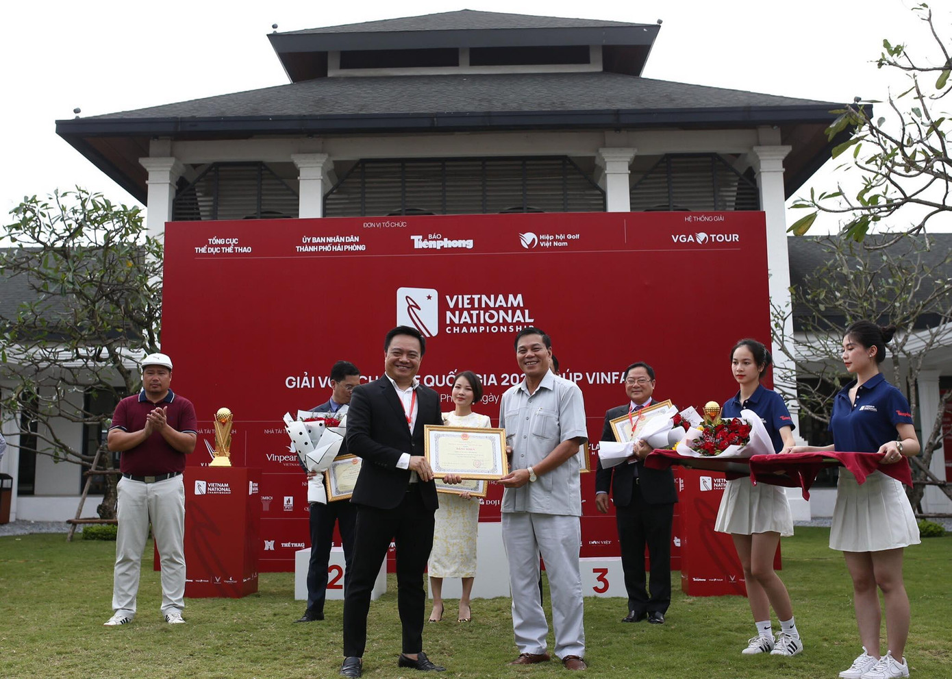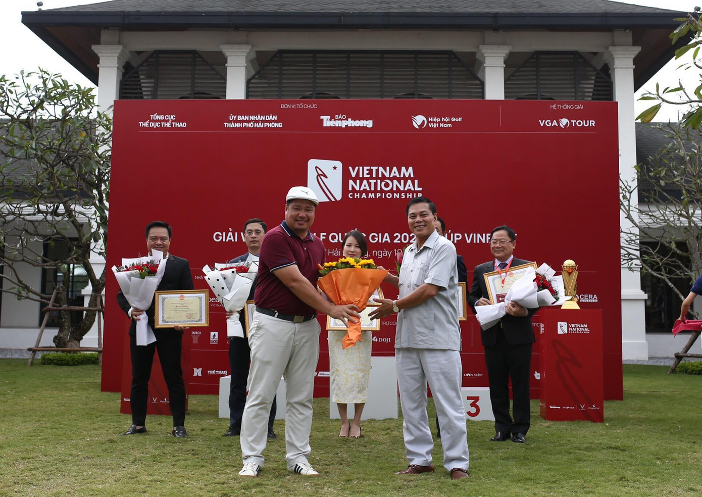 Ban tổ chức trao giải bảng Nam Giải Vô địch Golf Quốc gia 2022 - Cúp VinFast, gồm: Nguyễn Hữu Quyết - giải Ba; Đỗ Quang Khánh - giải Nhì, Nguyễn Anh Minh - giải Nhất