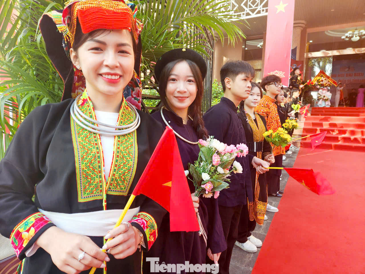 Các đại biểu thuộc các dân tộc Tày, Nùng, Giáy, Khmer, Mường hân hoan, đoàn kết dự Đại hội. (ảnh: Duy Chiến)