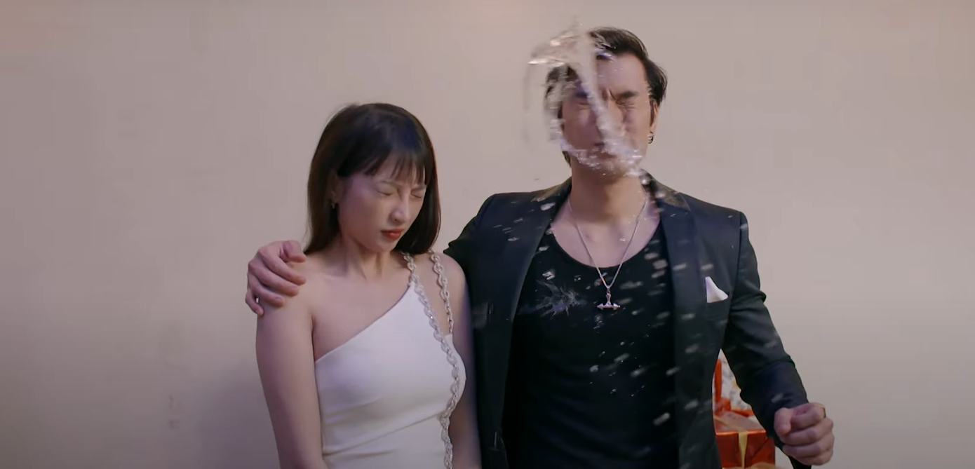 Chưa kịp hiểu chuyện, Tuấn Khang đã bị bạn gái cũ tiến tới và tạt thẳng ly nước vào mặt. Chưa hết, cô gái này còn "bóc phốt" Tuấn Khang mỗi lần tán tỉnh cô nào thì đều bày ra một nhà đầy hoa hồng để tỏ tình. Rồi cô gái này cho Tuấn Khang một cái tát đau điếng.