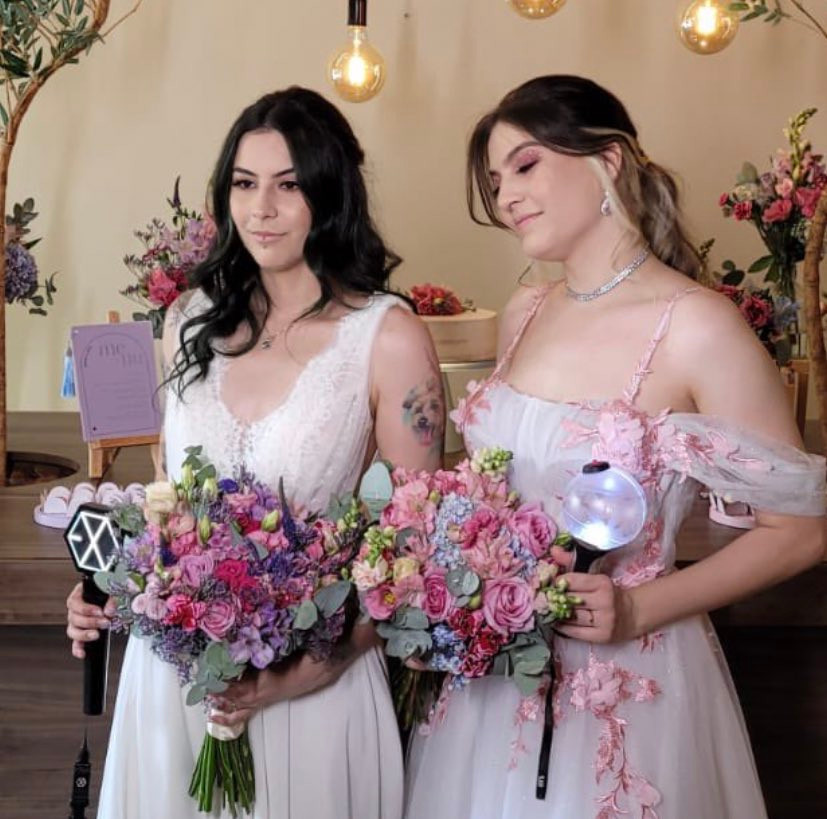 Bức ảnh cưới được Jo chia sẻ trên Twitter. Bạn đời của cô là Julia, cũng là fan K-Pop. Được biết, cả hai đã tổ chức hôn lễ vào cuối năm ngoái trước sự chứng kiến của hai bên gia đình.