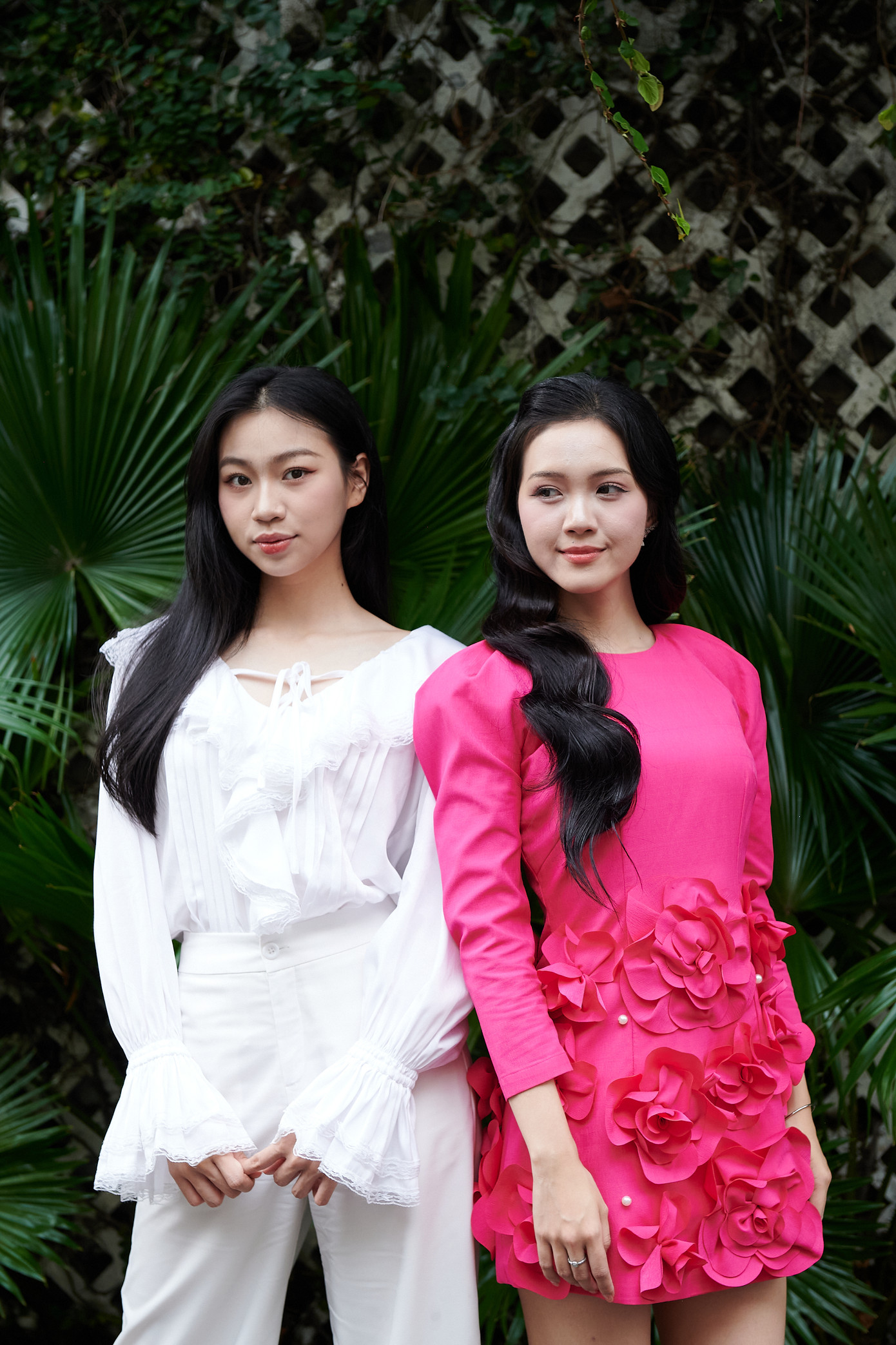 | Cận nhan sắc MC song ngữ sinh năm 1999 Mỹ Vân (áo hồng) và Á khôi Đại học Tài chính Marketing Huyền Cơ trong buổi trà chiều. |