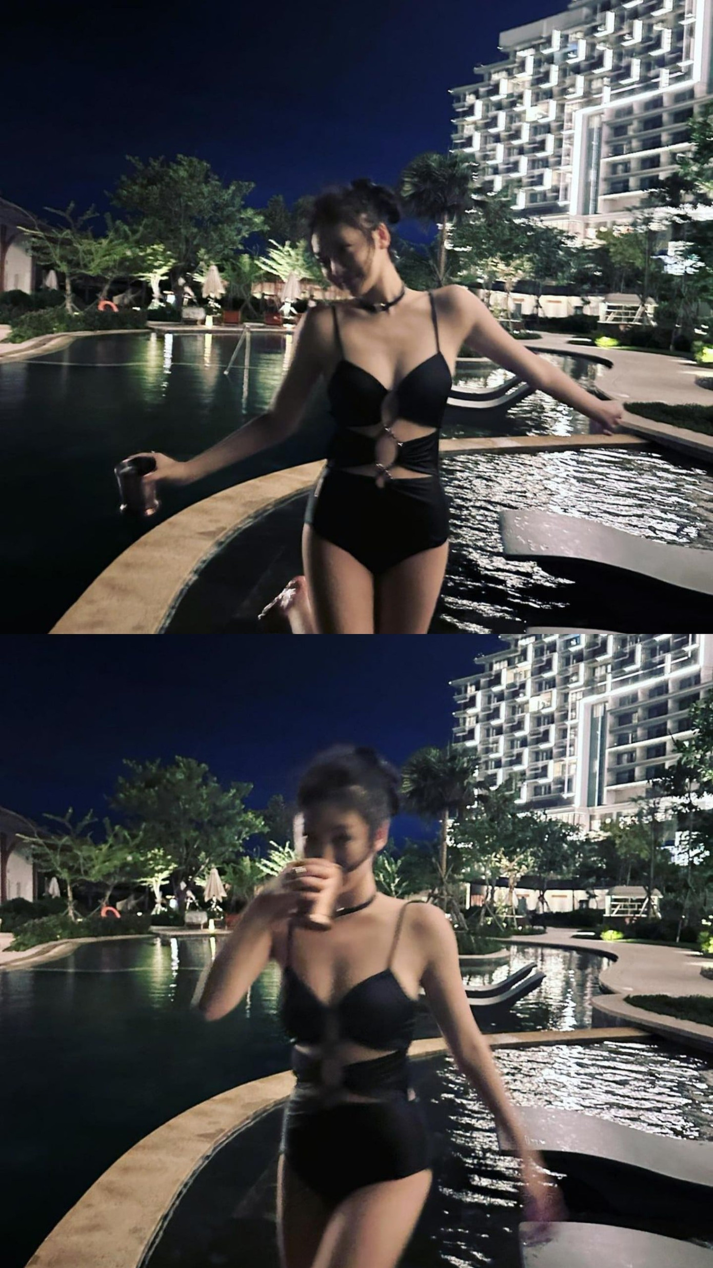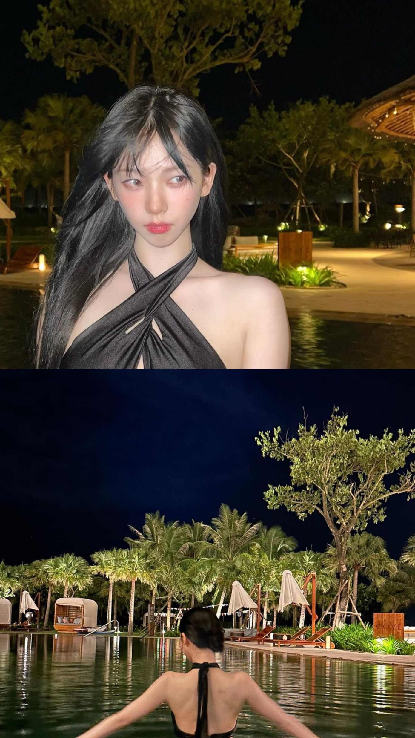 Nối tiếp em út, sáng ngày 18/6, Karina cũng tung những hình ảnh thả dáng ở hồ bơi. Dù luôn được khen ngợi vì hình thể cực phẩm, khuôn mặt AI, trưởng nhóm aespa vẫn khiến fan phải trầm trồ không ngớt vì sắc vóc của mình.