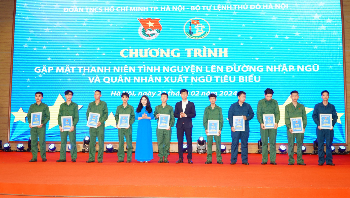 Trong khuôn khổ chương trình, Thành Đoàn Hà Nội, Đoàn Thanh niên EVN Hà Nội và Đoàn Thanh niên VNPT Hà Nội đã tặng giấy chứng nhận và quà cho 110 thanh niên tình nguyện lên đường nhập ngũ tiêu biểu năm 2024; tặng Bằng khen và quà của Thành Đoàn Hà Nội cho 10 quân nhân xuất ngũ tiêu biểu.