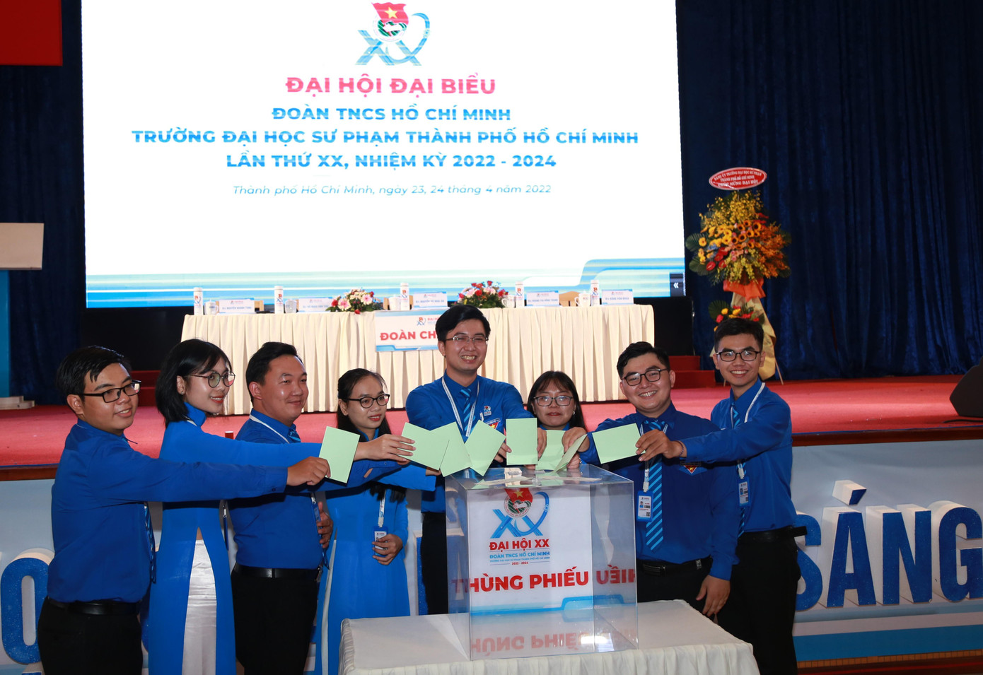 Đại hội đã bầu Ban Chấp hành Đoàn Thanh niên Cộng sản Hồ Chí Minh Trường Đại học Sư phạm TPHCM khóa XX, nhiệm kỳ 2022 – 2024 gồm 27 thành viên. Anh Nguyễn Vũ Hoài Ân, Bí thư Đoàn trường khóa XI tiếp tục được bầu giữ chức Bí thư Đoàn trường khóa XX, nhiệm kỳ 2022 - 2024. Tại hội nghị lần thứ nhất Ban Chấp hành, các đại biểu đã bầu các chức danh chủ chốt gồm Phó Bí thư, Ủy viên Ban Thường vụ, Chủ nhiệm Ủy ban kiểm tra Đoàn trường khóa XX. Các anh chị Nguyễn Khánh Tùng, Đặng Văn Khoa và Hoàng Thị Hồng Trang được bầu giữ chức Phó Bí thư Đoàn trường.