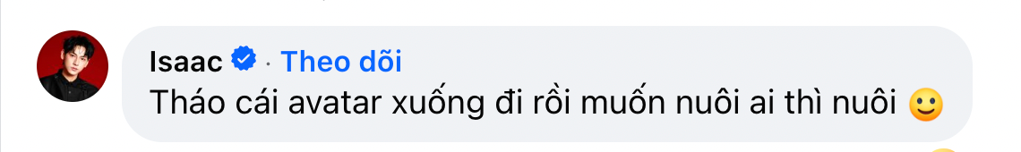 Từ phản ứng của Puka dành cho "cặp đôi mới nổi" này, người hâm mộ lập tức nhớ đến động thái "bất bình" Isaac dành cho Negav. Bởi trong khi vẫn đang để ảnh đại diện là hình bức tượng sáp của Isaac, thì nam rapper Ngủ Một Mình đã công khai sẽ "nuôi" Pháp Kiều. Bên dưới bài đăng của Negav, giọng ca Anh Sẽ Về Sớm Thôi đã để lại bình luận: "Tháo cái avatar xuống đi rồi muốn nuôi ai thì nuôi".