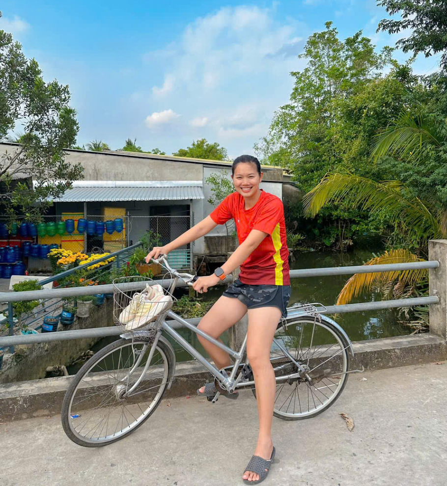 Đón Tết 2025, Nguyễn Thị Ánh Viên cũng khiến những người yêu mến cô trầm trồ với vẻ dịu dàng trong trang phục áo dài truyền thống. Cô cũng chia sẻ khoảnh khắc nghỉ Tết bên gia đình, đạp xe đạp "do mẹ sắm" vui chơi ở quê, ngắm đàn gà...