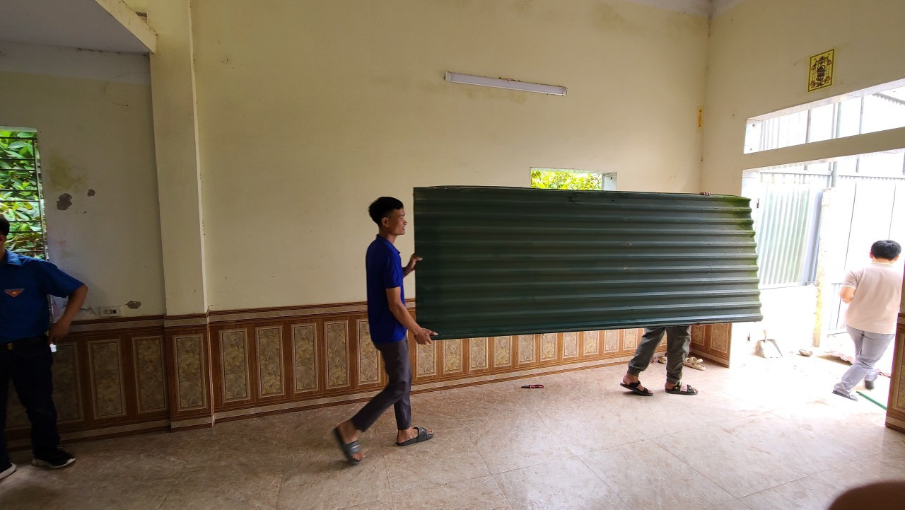 | Tình nguyện viên hỗ trợ người dân di dời vật dụng, tài sản. Ảnh: TĐTB |