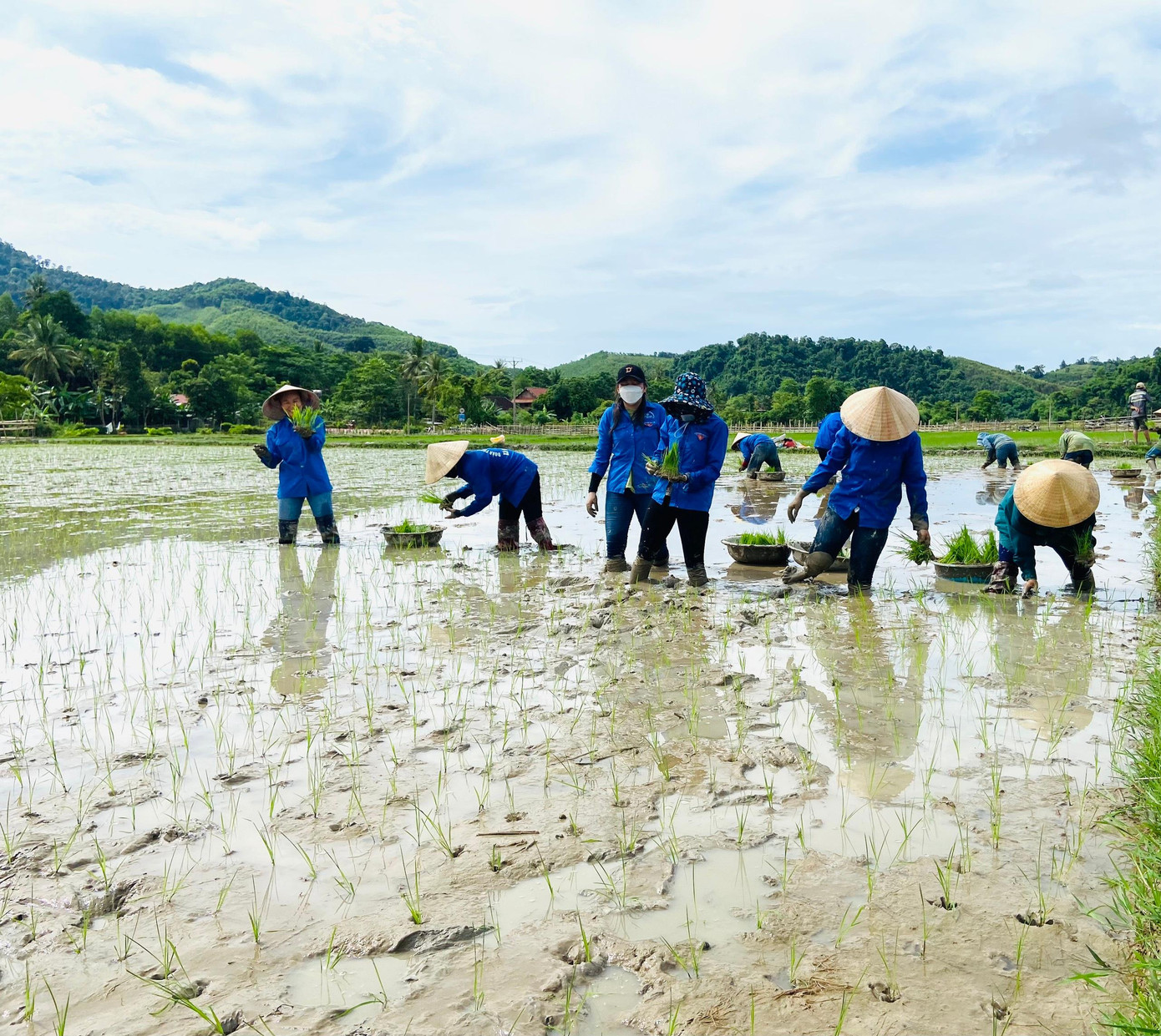| Đoàn xã Đôn Phục, Đoàn xã Thạch Ngàn, huyện Con Cuông (Nghệ An) đã huy động hàng chục đoàn viên, thanh niên cùng xuống ruộng cấy lúa cho các hộ gia đình thương binh, liệt sĩ. |