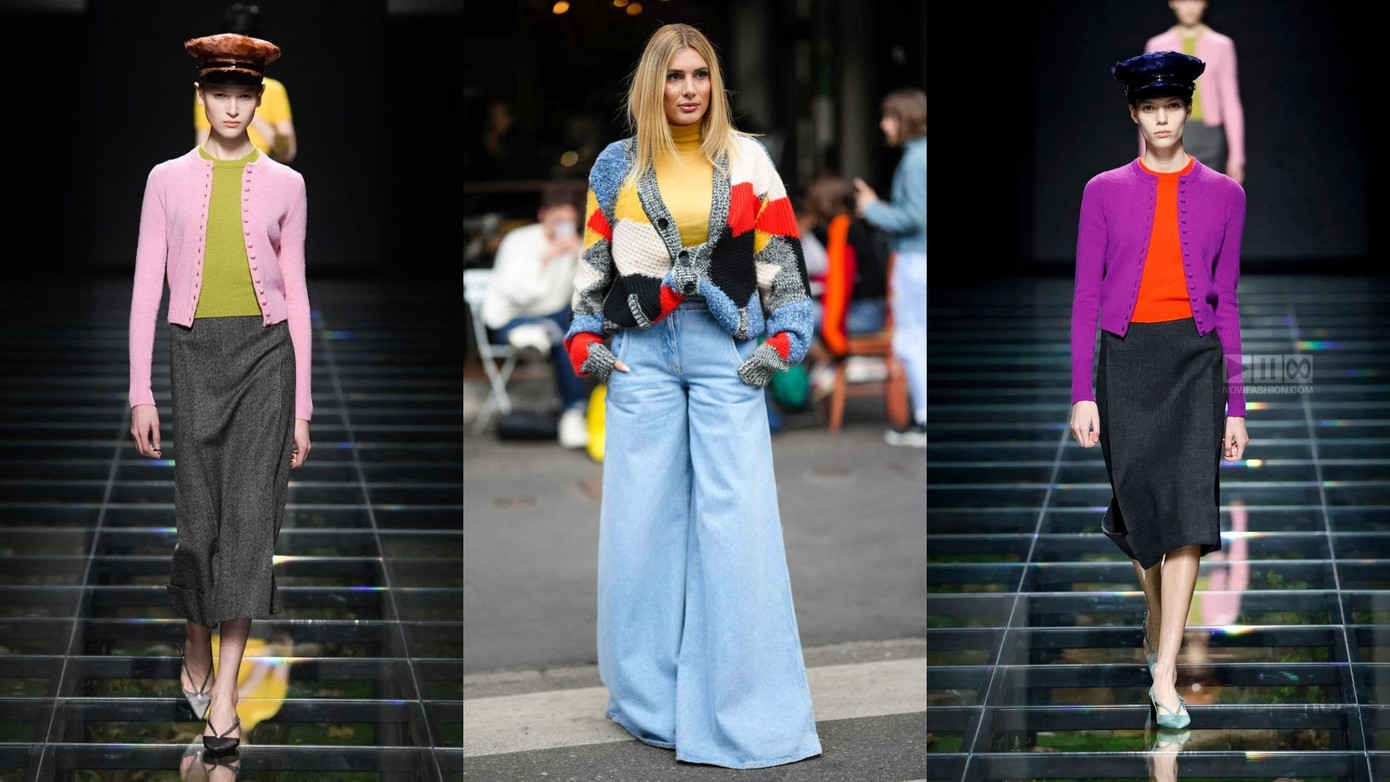 Cách tiếp cận sống động của Prada đã đem đến một góc nhìn mới cho những chiếc áo cardigan cổ điển. Đó là một chiếc áo khoác cardigan màu hồng, dáng ôm vừa vặn, chiều dài cỡ lửng, được khoác bên ngoài một chiếc khác cổ tròn màu xanh lá mạ. Bên cạnh hồng và xanh lá, những cặp đôi màu sắc như xanh dương và đỏ, hồng và đỏ, hoặc tím và cam sẽ mang đến sự bất ngờ, nhưng vẫn giữ được sự thời thượng dẫn đầu xu hướng.