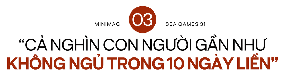 Giữa chảo lửa Mỹ Đình, có những đồng đội của tôi một ngày đi và chạy quanh sân vận động 8km. Cả nghìn con người gần như không ngủ, 7h sáng ra sân, 3h sáng về nhà, ngày nào cũng thế trong suốt 10 ngày liền trước khi diễn ra lễ khai mạc, và 4 ngày trước bế mạc.
