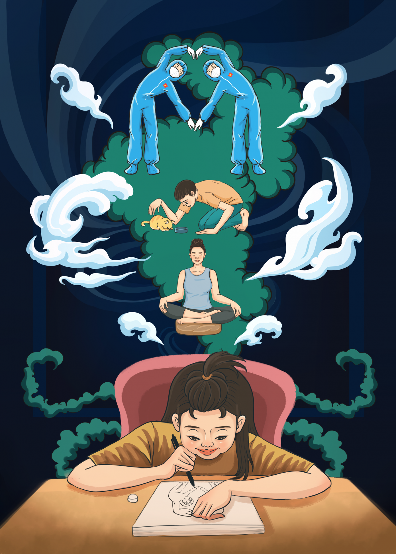 “Cho tới năm lớp 10, sau vài buổi hướng nghiệp ở trường, Phượng mới xác định được ngành học mình muốn theo đuổi là thiết kế mỹ thuật số. Lớp 12 Phượng bắt đầu tham gia lớp luyện vẽ và tìm hiểu sâu hơn về ngành học này”.
