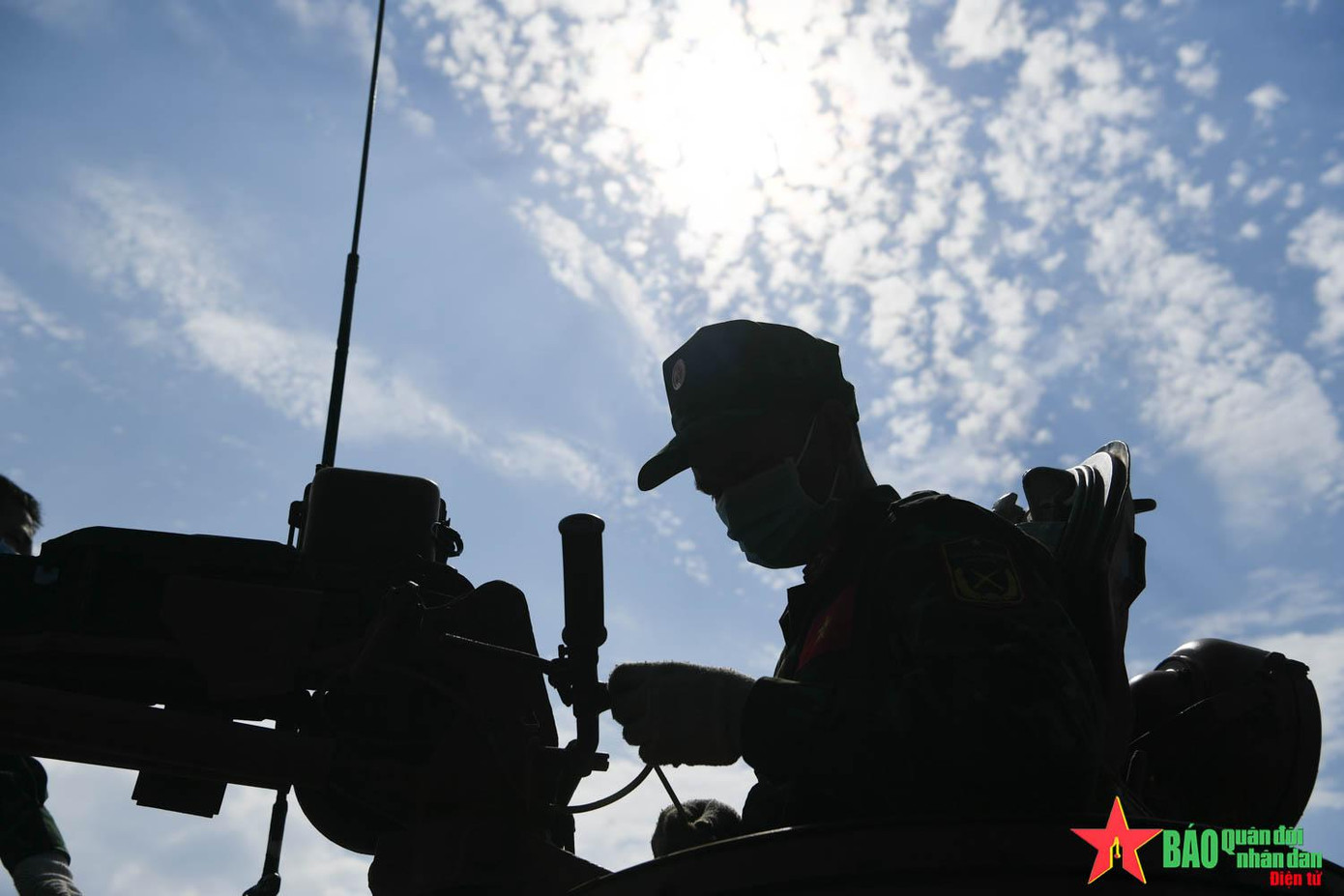 Các thành viên kíp xe kiểm tra hệt thống hoả lực súng phòng không 12 ly 7 trước khi bắn