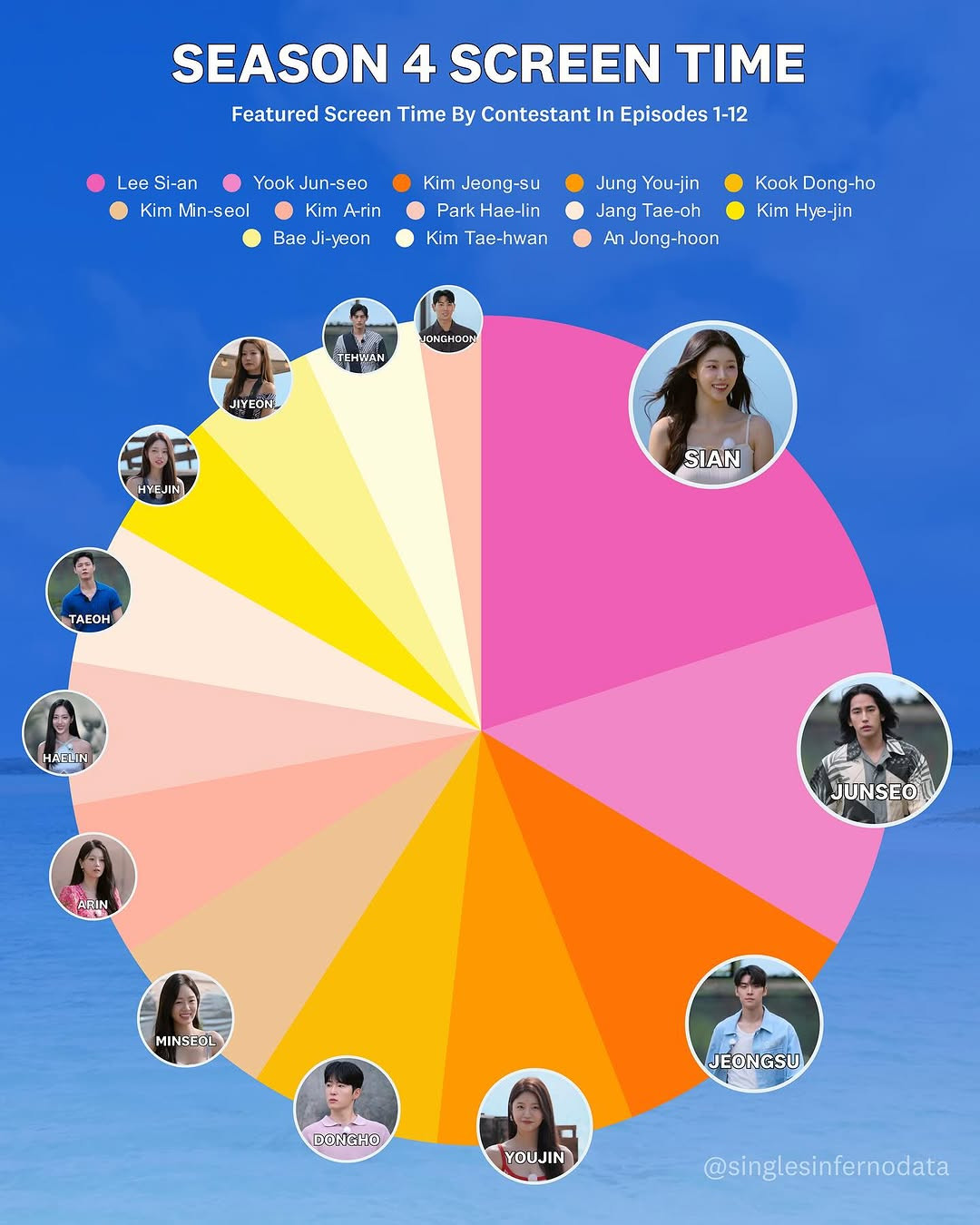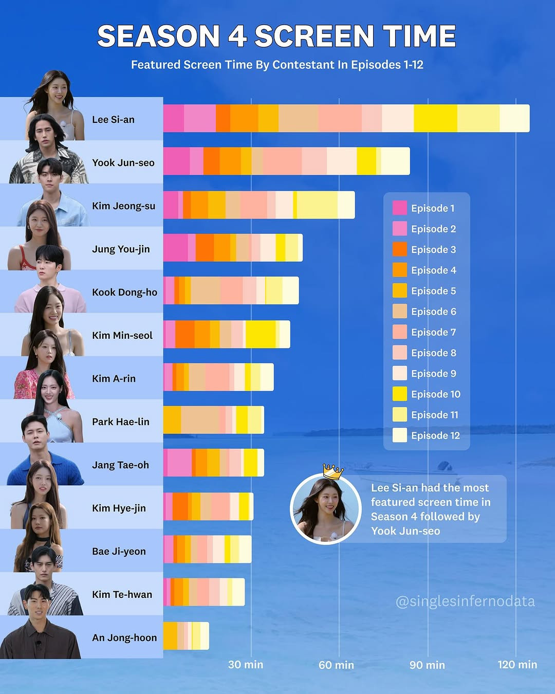 Lee Si An được nhận định là "át chủ bài" của Địa Ngục Độc Thân 4. Thời lượng lên sóng của Si An trong hành trình Single's Inferno 4 vượt mốc 120 phút/12 tập. Con số này vượt xa vị trí thứ 2 là Yuk Jun Seo - nam họa sĩ có gần 90 phút lên hình.