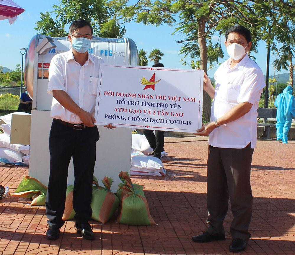 | Dịp này, Hội Doanh nhân trẻ Việt Nam, Hội Doanh nhân trẻ Phú Yên đã đóng góp 6,6 tấn gạo để cây ATM gạo hoạt động - Ảnh: Văn Tài |