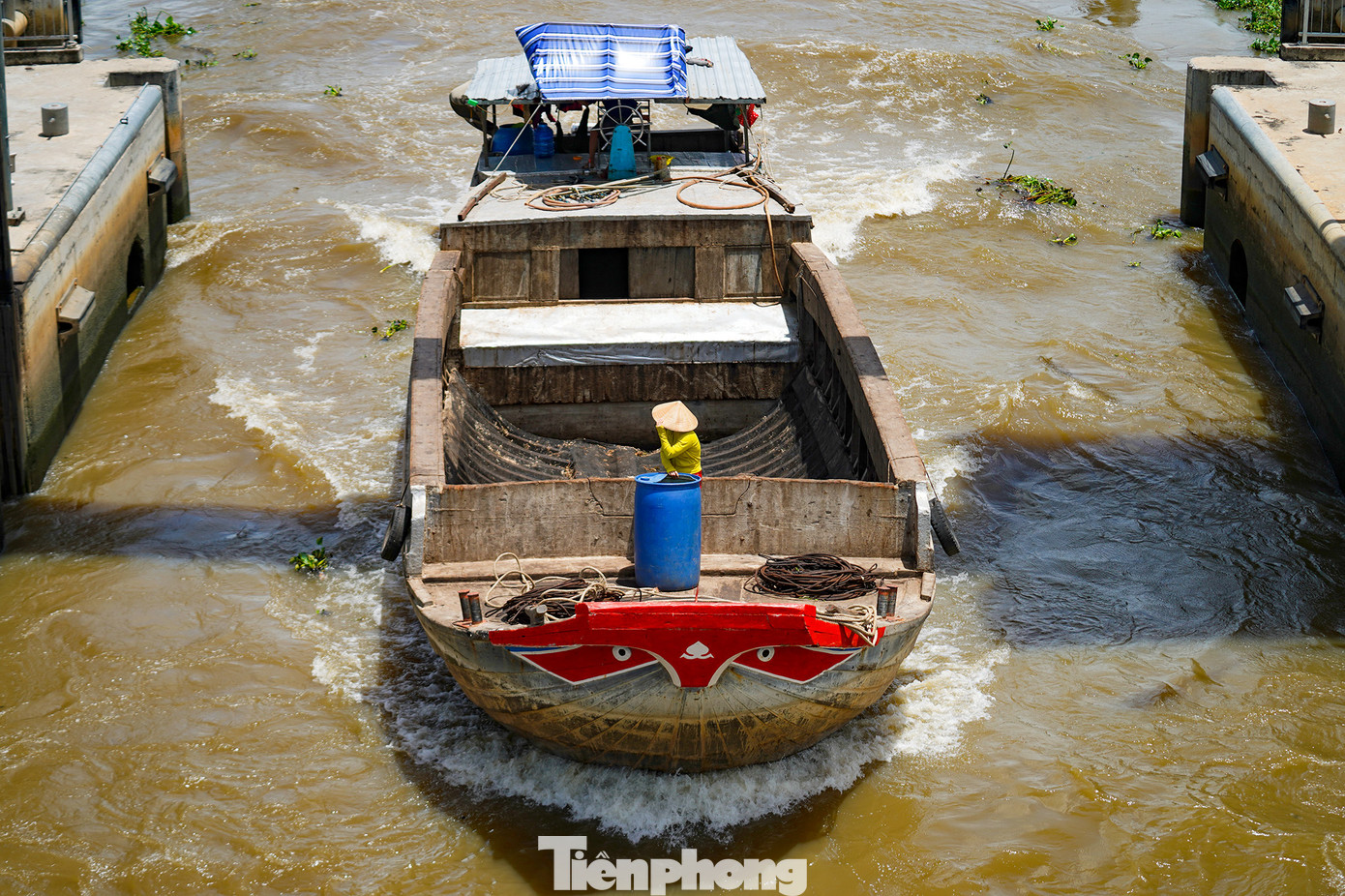 “Do độ mặn xâm nhập sâu trên các sông Vàm Cỏ Đông, Vàm Cỏ Tây, sông Tiền nên các kênh, rạch ở Tiền Giang, Long An được ngành chức năng đóng lại để ngăn nước mặn vào nội đồng. Từ đó, phương tiện vận chuyển hàng hóa đi vùng Đồng Tháp Mười và ngược lại qua âu tàu Rạch Chanh tăng đột biến”, ông Dũng cho biết.