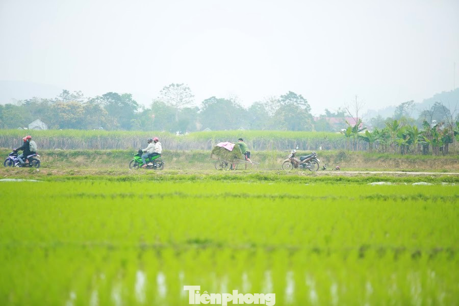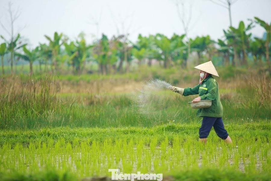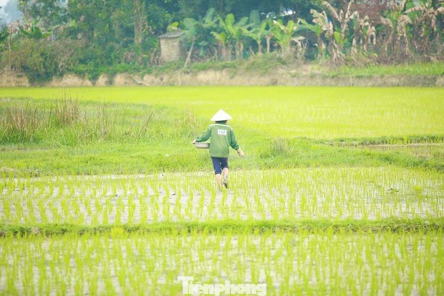 Nhiều người dân đã cấy lúa sớm từ trước Tết Nguyên đán, đầu xuân năm mới cũng tranh thủ ra đồng vãi phân, chăm sóc cây lúa.