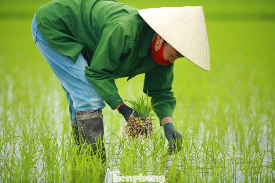 Mọi người đều tranh thủ cấy lúa nhanh nhất có thể tránh trưa chiều thời tiết nắng nóng.
