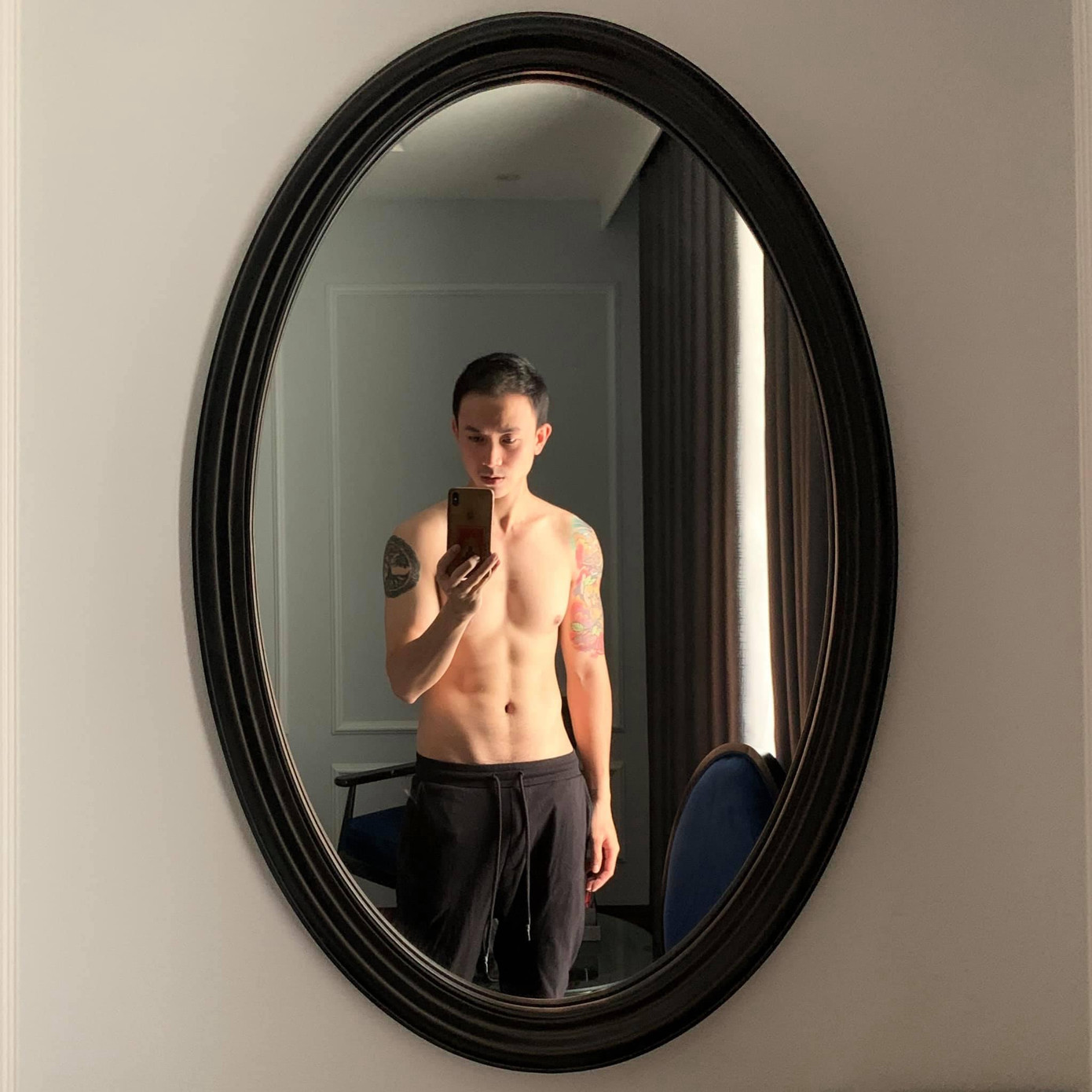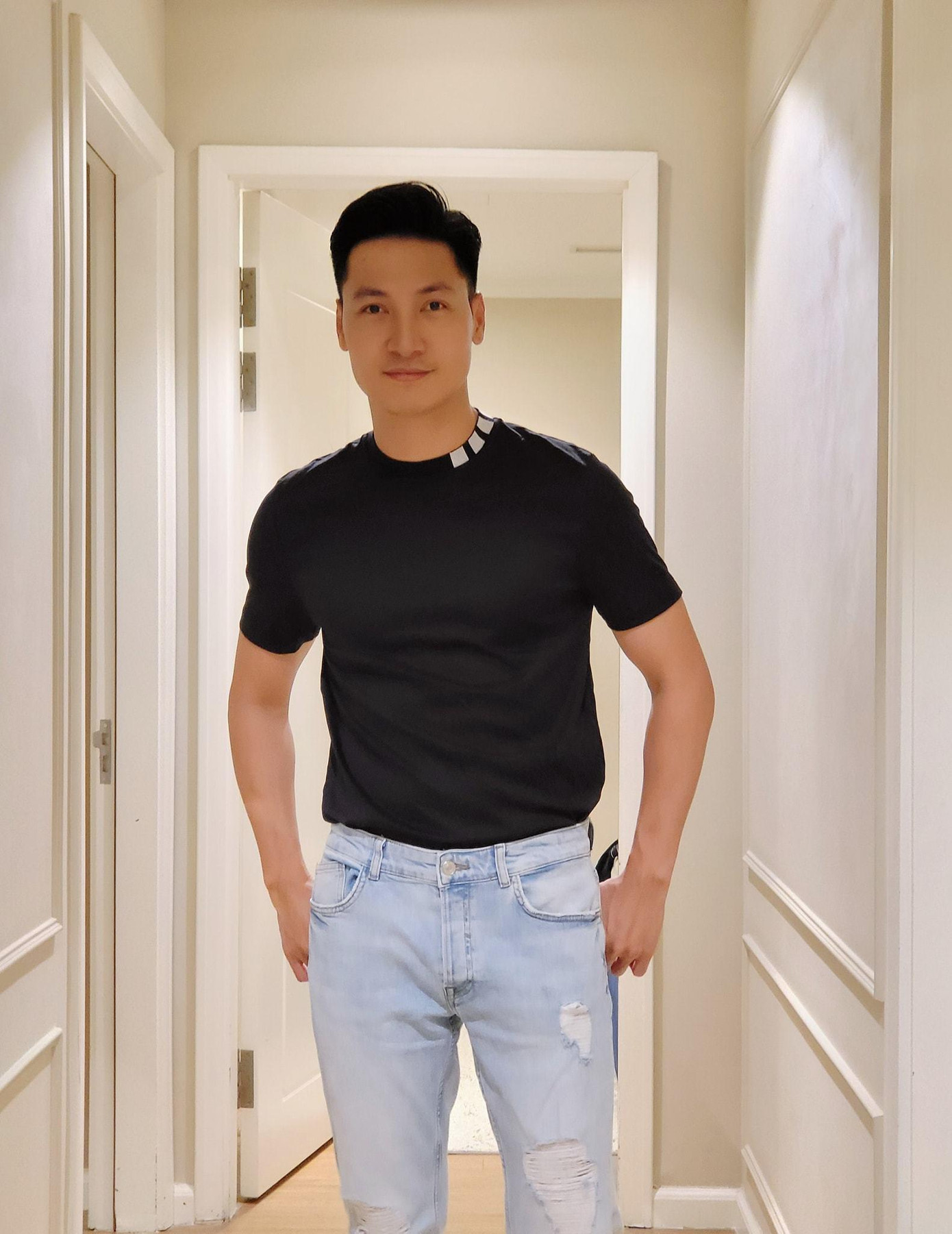 Anh chàng tất nhiên không ngại chụp selfie khoe trọn dáng vóc rắn rỏi như thế này. Ghé vào trang cá nhân của Sỹ Hưng, hẳn nhiều khán giả sẽ công nhận dáng đẹp nên nam diễn viên mặc đồ gì cũng chuẩn, từ suit lịch lãm đến đồ thể thao năng động.