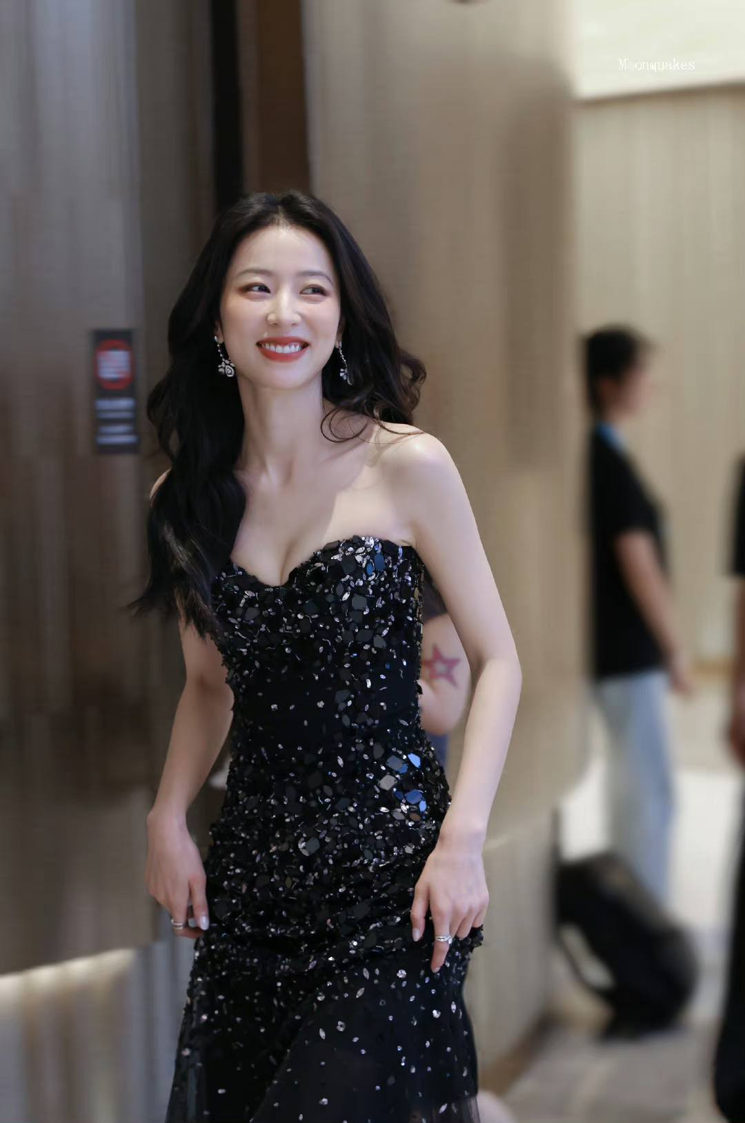 | Đường Yên sang trọng, kiều diễm trong đầm quây đen với chi tiết đính đá lấp lánh được ví như mang theo cả dải thiên hà. |