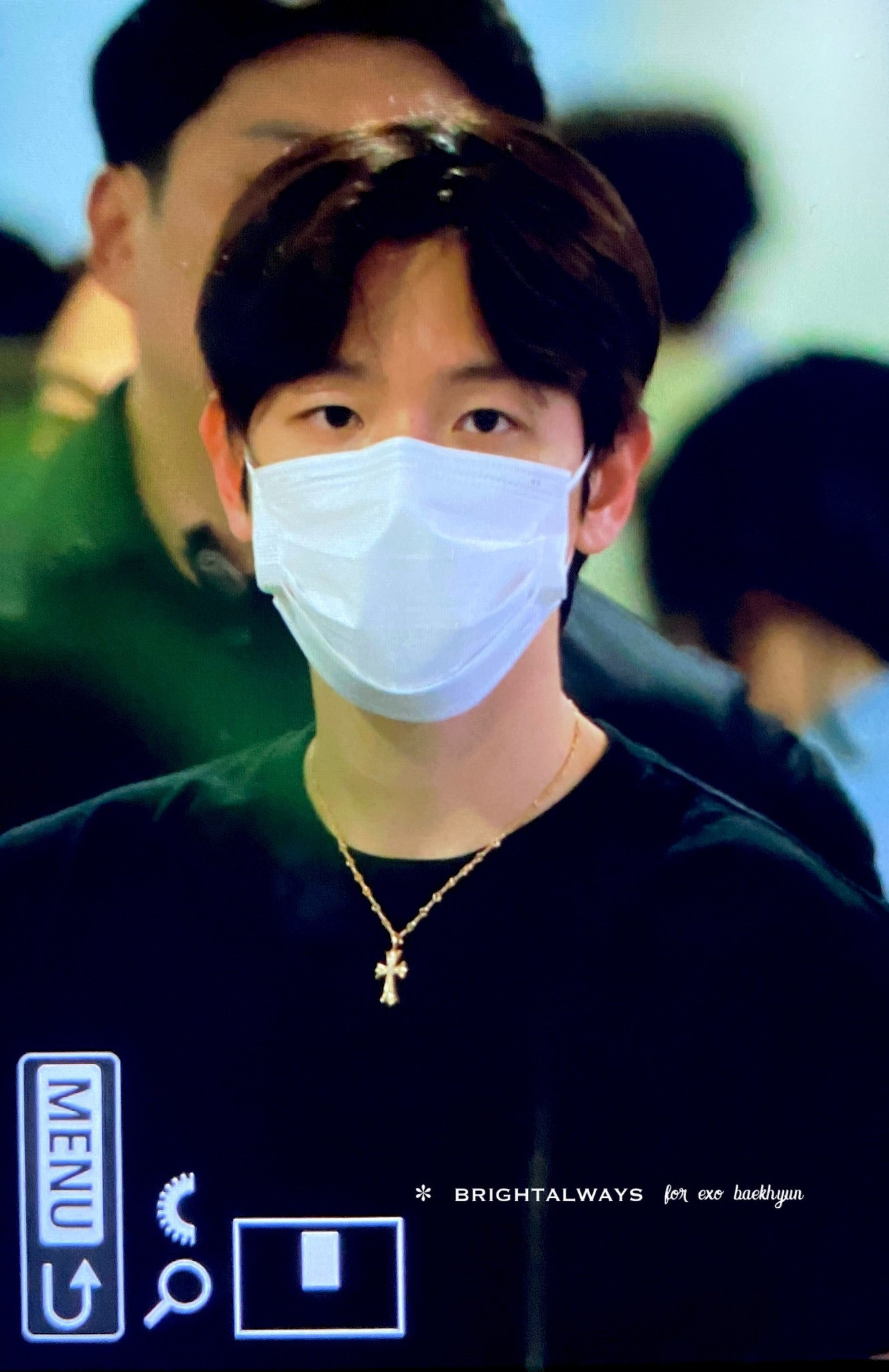 | Kể cả lớp khẩu trang cũng không thể làm lu mờ nhan sắc của Baekhyun. |
