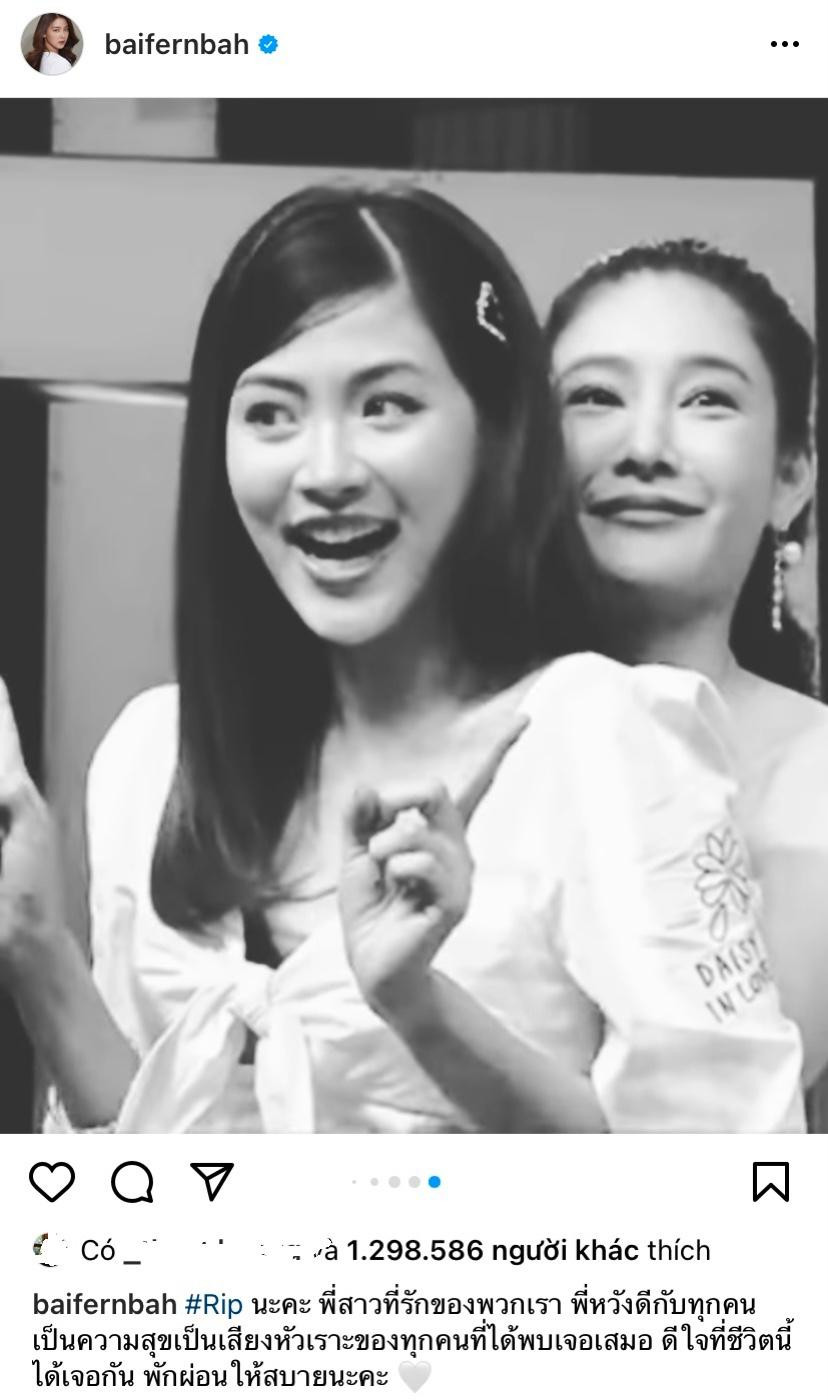 | Mỹ nhân Thái Lan Ice Apitsada cũng chia sẻ bài viết khá dài bày tỏ sự lo lắng ngay từ khi tin tức người chị em thân thiết của mình mất tích. |